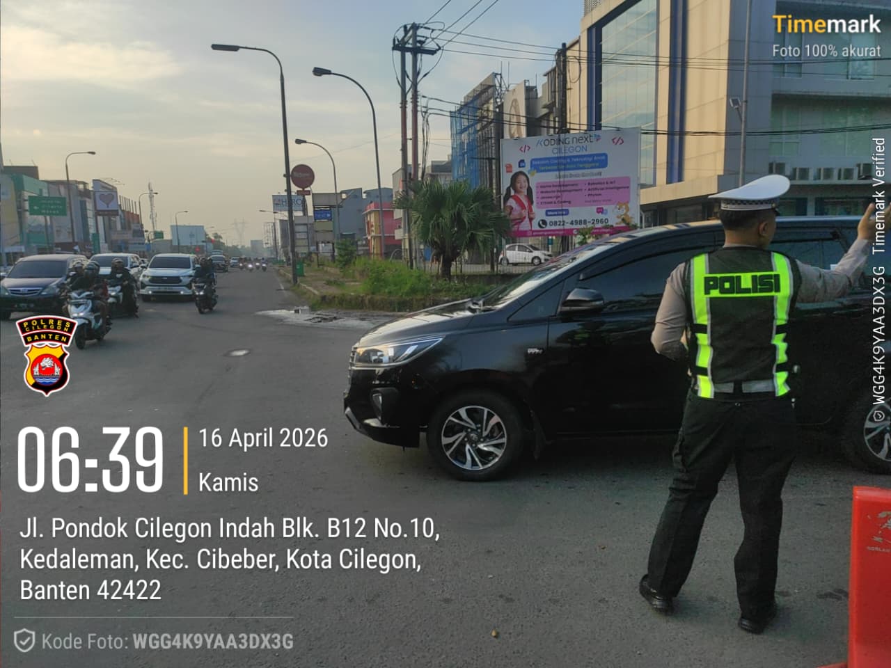 Cilegon, Satlantas Polres Cilegon Polda Banten – Berikan pelayanan kepada masyarakat Kasat lantas Polres Cilegon AKP Ridwan memerintahkan jajaran lalulintas untuk melaksanakan pengaturan lalu lintas di penggal – penggal jalan yang rawan kemacetan di Kota Cilegon, (Kamis,16/4/2026)Dalam giat Pengaturan Lalu lintas di Pagi hari ini bertujuan agar terciptanya Kamseltibcar Lantas dan mengantisipasi terjadinya Laka...