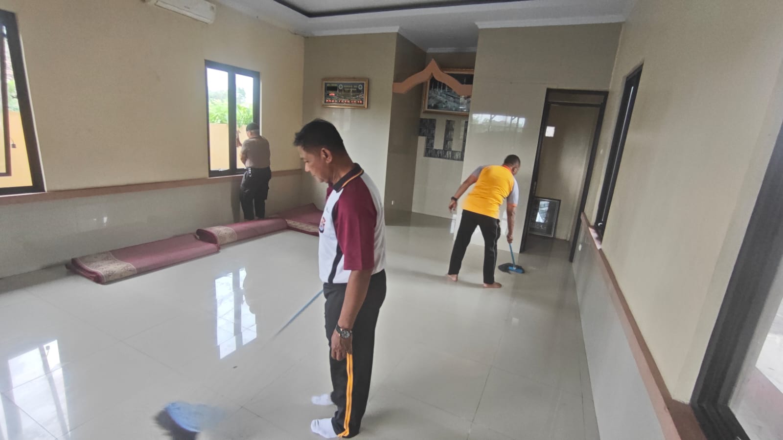 Seluruh Personil Polsek Ciwandan Bersih-bersih Dan Kerja Bakti Mako Polsek Ciwandan.
