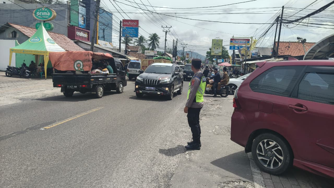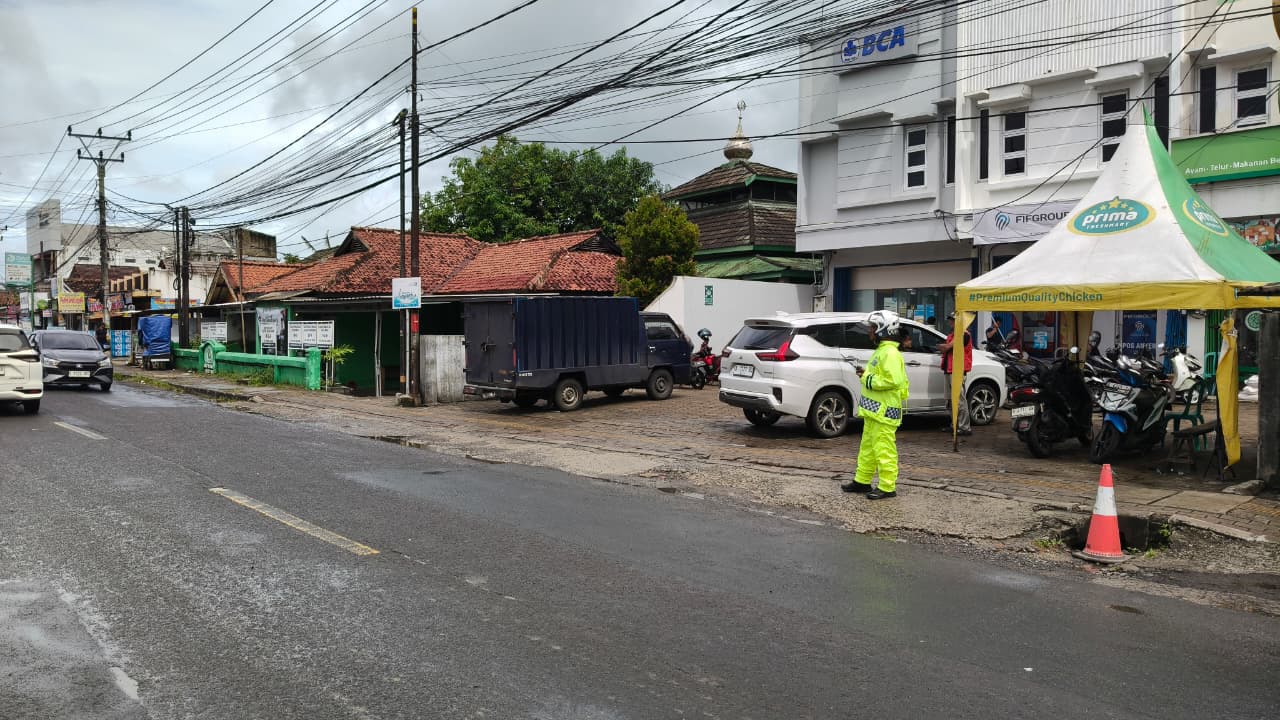 Personel Polres Cilegon Lakukan Pengaturan Lalu Lintas di Titik Rawan Kepadatan