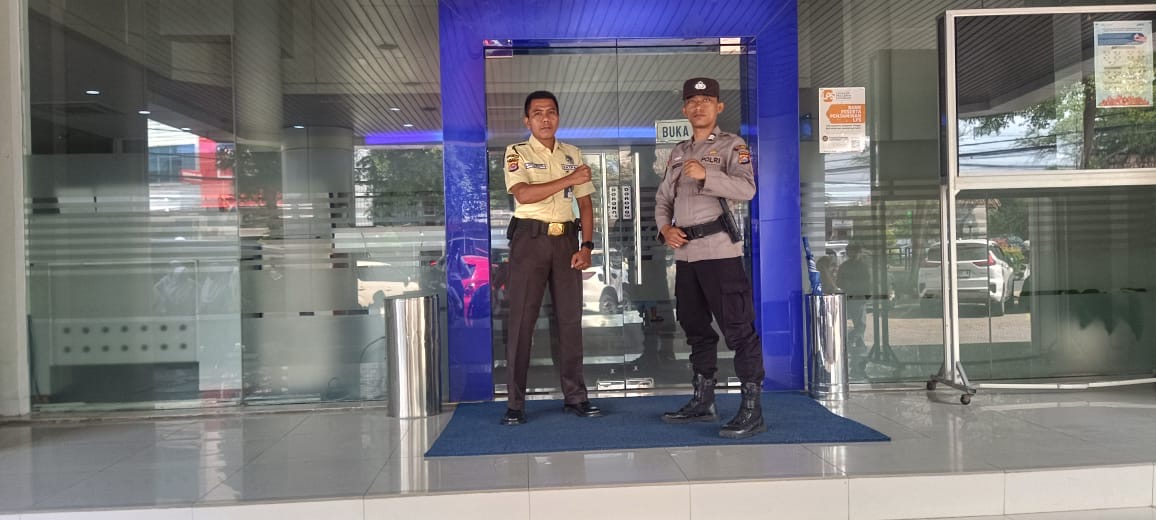 Pers satpamobvit polres cilegon melaksanakan pengamanan bank BRI