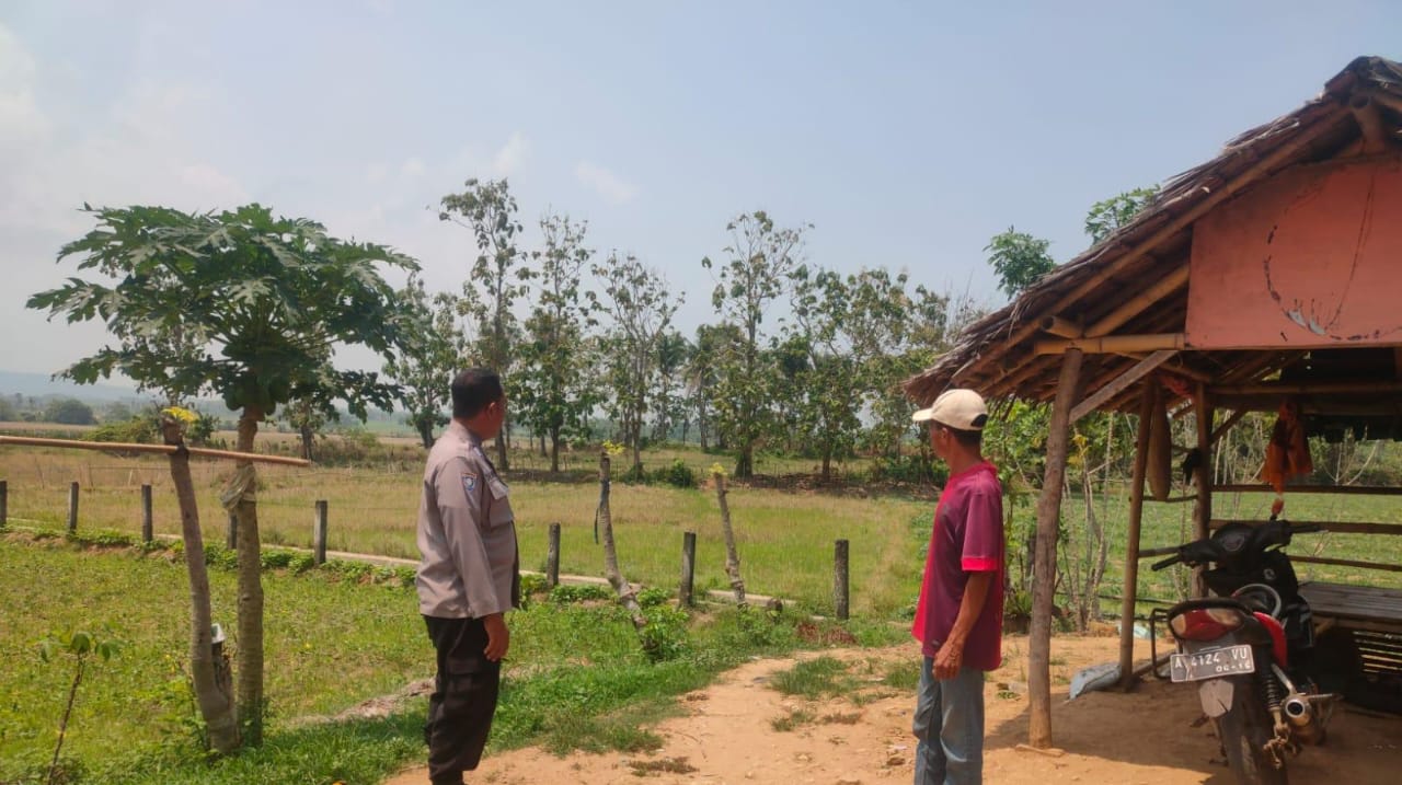 Dalam rangka mendukung program ketahanan pangan nasional dan swasembada pangan Bhabinkamtibmas Polsek Anyar melaksanakan kegiatan sambang dan monitoring lahan pertanian jagung di Desa Cikoneng, Kecamatan Anyar, Kabupaten Serang. Jum'at (10/10)
