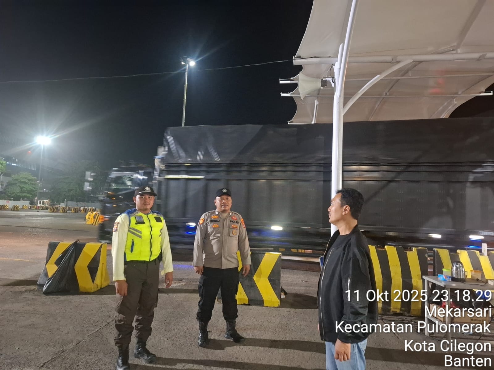 Cilegon - Personil Polsek Kskp Merak Polres Cilegon melaksanakan patroli di kawasan pelabuhan merak memberikan rasa aman dan damai, Minggu (12/10/2025)