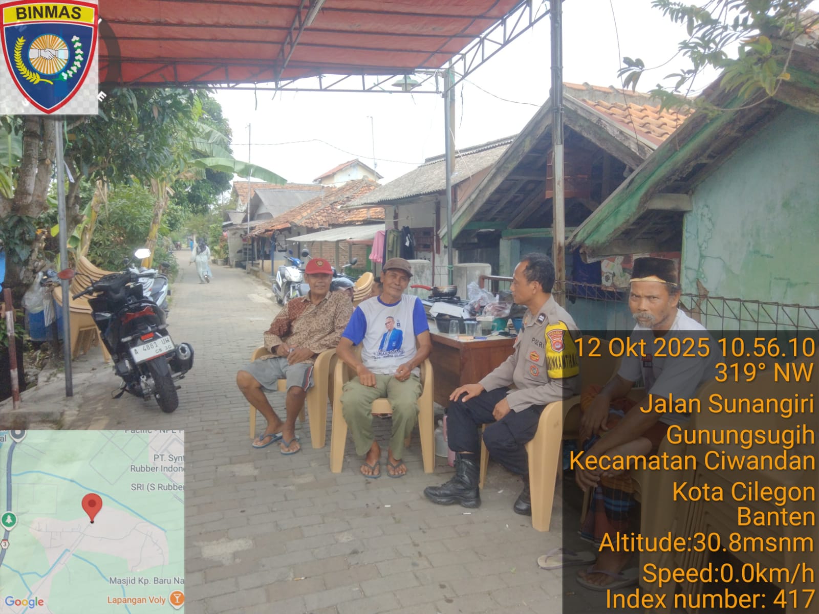 Cilegon - Konsisten dalam menjalin silaturahmi dan membangun komunikasi yang baik dengan Masyarakat binaannya masing – masing ,Bhabinkamtibmas Polsek Ciwandan Polres Cilegon Polda Banten Melaksanakan Sowan dan Sambang Dialogis menciptakan kamtibmas yang kondusif di daerah binaannya,Minggu (12/10/2025).