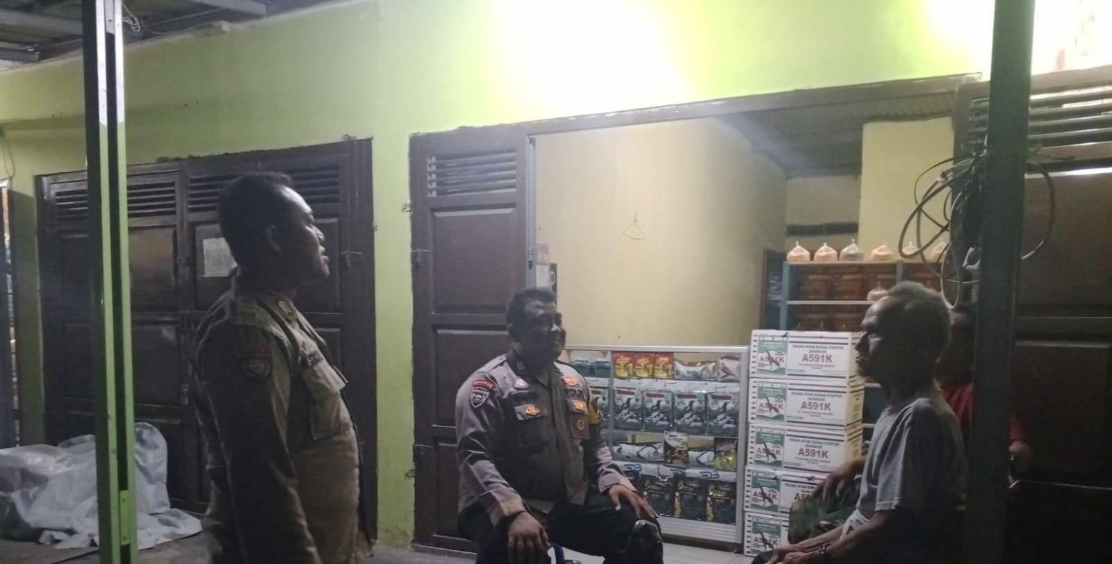 Bhabinkamtibmas menyambangi warga yang sedang duduk-duduk santai dan ngobrol , pada kesempatan yang baik tersebut Bhabinkamtibmas menyampaikan pesan-pesan kamtibmas dan Mengajak masyarakat untuk meningkatkan kewaspadaan serta untuk bersama-sama ikut serta menjaga keamanan lingkungan guna mencegah terjadinya gangguan kamtibmas.