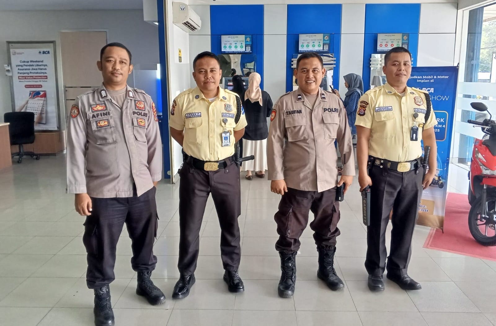 CILEGON - Personel Polsek Cibeber Polres Cilegon Polda Banten menyambangi petugas keamanan (satpam) di wilayah hukum Polsek Cibeber untuk memberikan imbauan keamanan dan ketertiban masyarakat (kamtibmas).