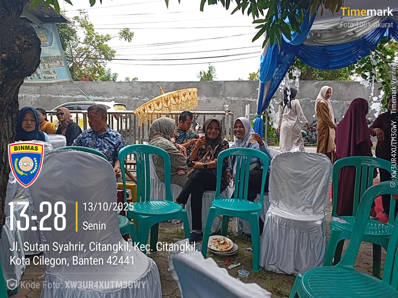 Cilegon - Bhabinkamtibmas Polsek Ciwandan Polres Cilegon Polda Banten melaksanakan Kegiatan Kondangan/Undangan ini bertujuan untuk memastikan acara berlangsung dengan aman dan tertib, serta memberikan rasa aman kepada warga yang menghadiri resepsi pernikahan tersebut,Senin (13/10/2025).
