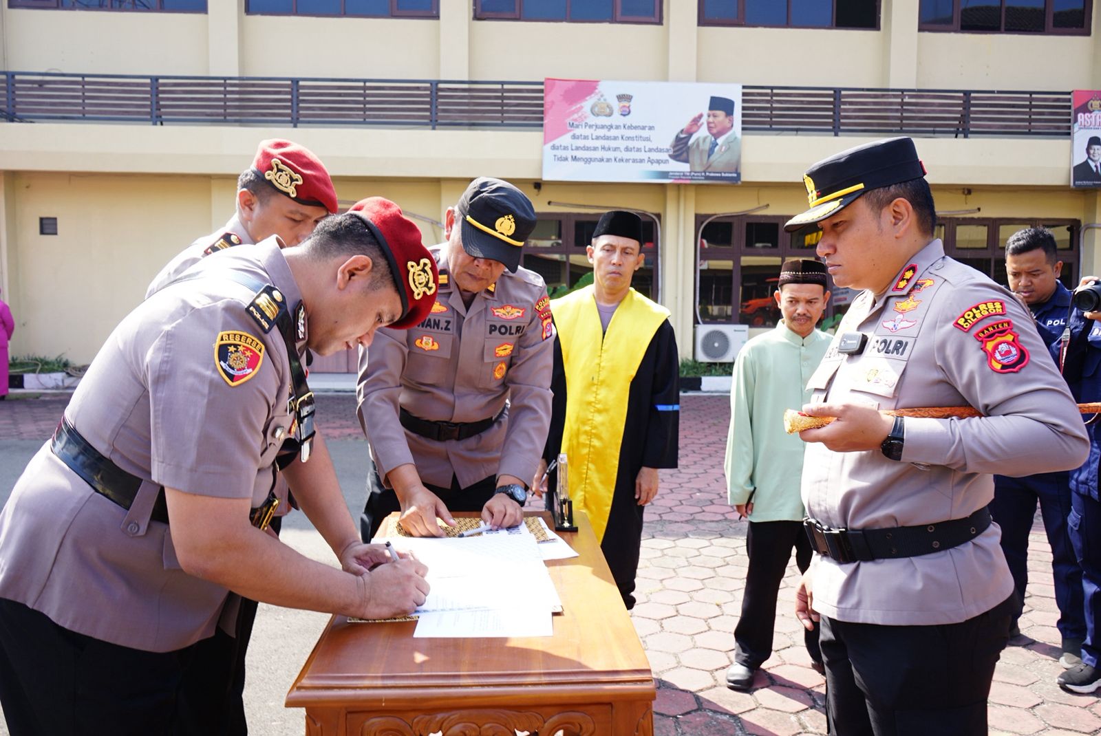 Pejabat yang melaksanakan serah terima jabatan yaitu Kompol Bhakti Yasa Saputri, S.H., M.H., yang menyerahkan jabatan Kabag SDM kepada Kompol Entang Cahyadi, S.H., M.A.; Kompol Chotijah, S.H., menyerahkan jabatan Kabag Log kepada AKP Sudibyo Wardoyo, S.H., M.M.; serta AKP Hardi Meidikson Samula, S.I.K., M.H., menyerahkan jabatan Kasat Reskrim kepada AKP Yoga Tama, S.Tr.K., S.I.K., M.Sc.