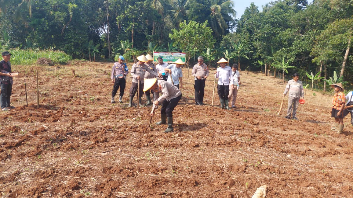 Penanaman Jagung serentak Kuartal IV Seluruh Indonesia di lahan milik kelompok tani Bpk. Maman Rt. 01/01 Kp. Macute Kel. Angsana Kec. Mancak-Serang daerah hukum Polres Cilegon.