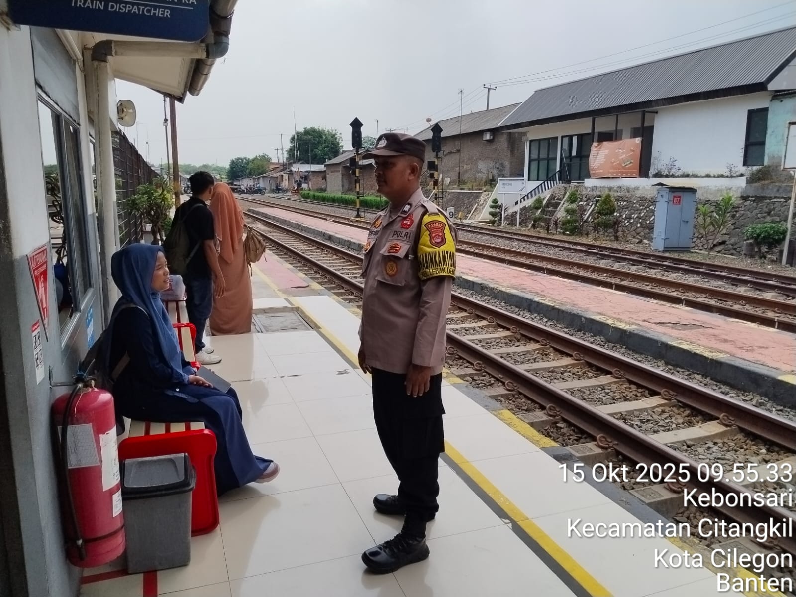 Cilegon - Personil Polsek Ciwandan Polres Cilegon Polda Banten melaksanakan giat patroli Dan dengan sambangi Petugas Stasiun Kereta Api dan penjaga pintu perlintasan kereta api,Rabu (15/10/2025).