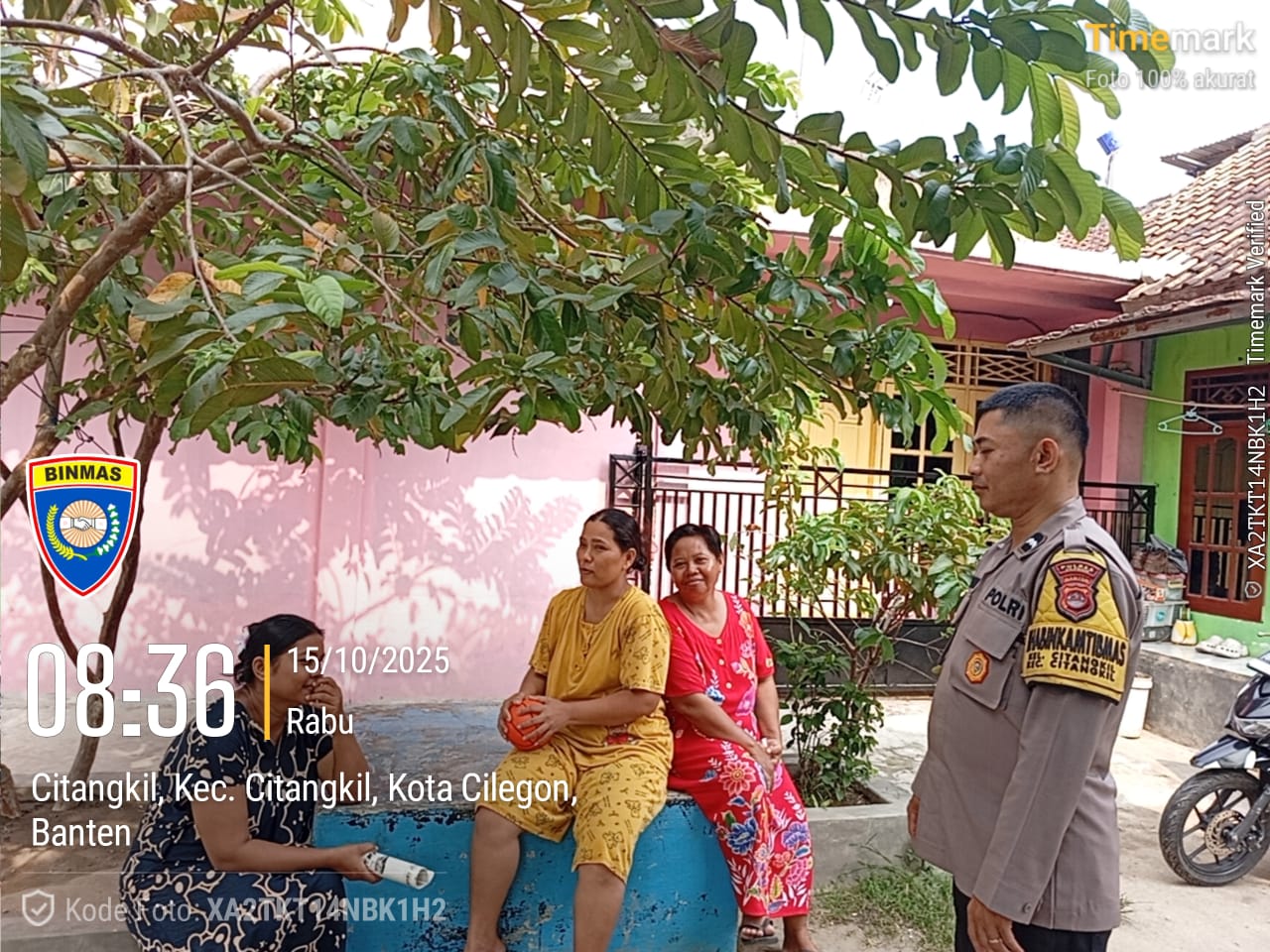 Cilegon - Bhabinkamtibmas Polsek Ciwandan Polres Cilegon Polda Banten merupakan ujung tombak kepolisian yang bersentuhan langsung dengan masyarakat guna menciptakan situasi kamtibmas yang aman dan kondusif,Rabu (15/10/2025).