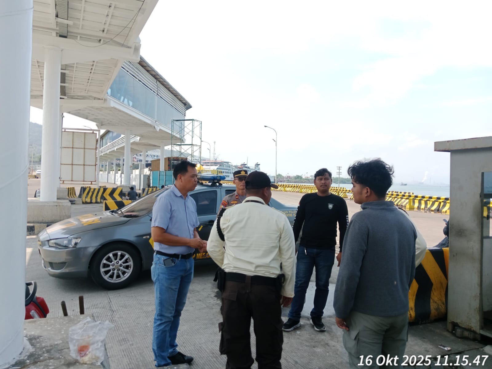 Cilegon - Personel Polsek Kskp Merak Polres Cilegon Polda Banten melaksanakan sambang dan patroli kawasan pelabuhan merak dalam rangka menjaga Harkamtibmas di Kawasan Pelabuhan Merak, Kamis (16/10/2025).
