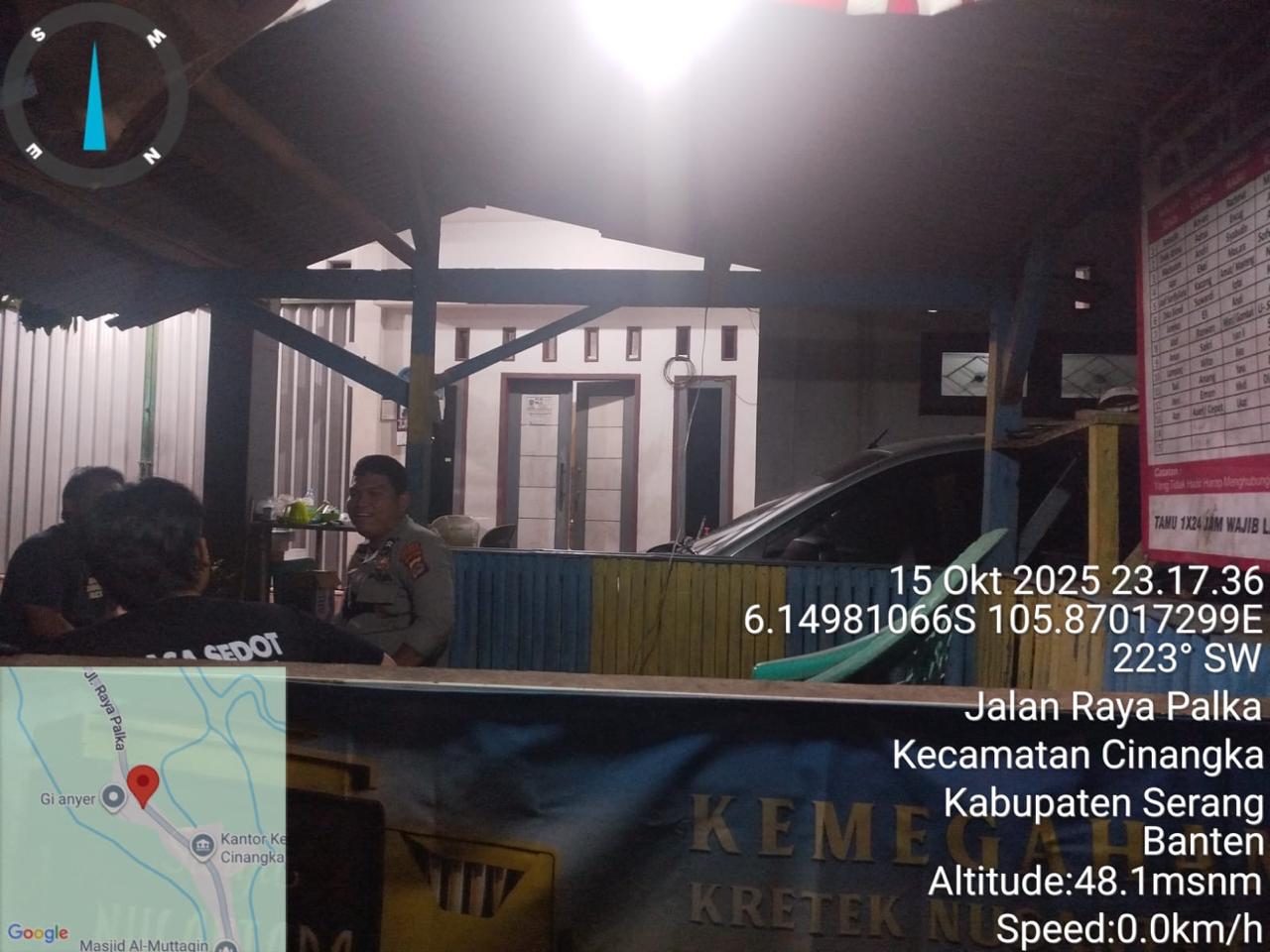 Kapolres Cilegon Polda Banten AKBP Martua Raja Taripar Laut Silitonga melalui Kapolsek Cinangka Polda Banten IPTU Rusnata menjelaskan dalam menjaga kemanan dan akuntansi lingkungan kami terus tingkatkan kegiatan Patroli menciptakan Rasa aman dengan hadir di tengah tengah masyarakat sehingga dapat meminalisir gangguan Kamtibmas serta menyampaikan Pesan-pesan Kamtibmas Kepada petugas yg melaksanakan kegiatan siskamling di lingkungannya masing-masing.