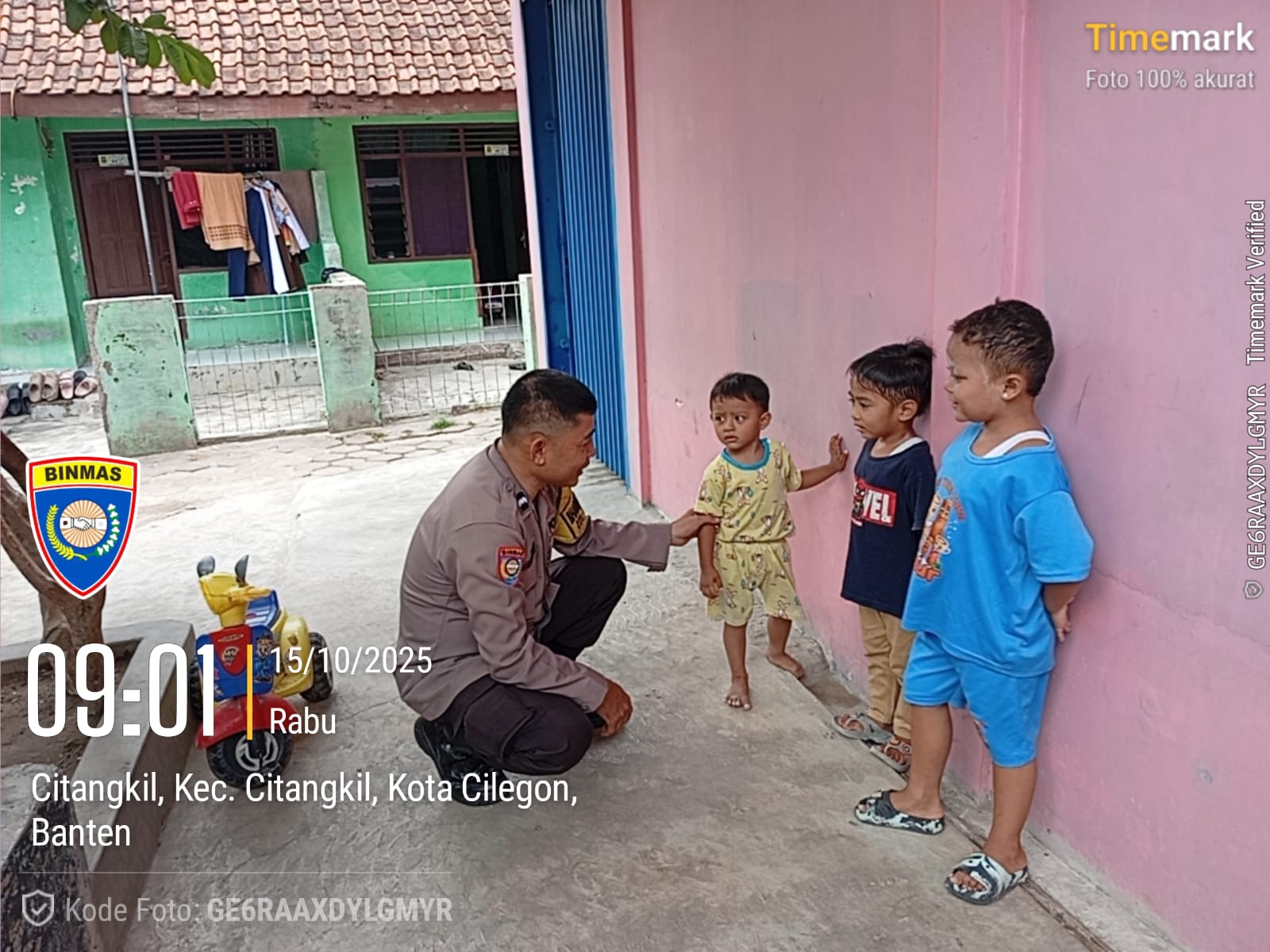 Bhabinkamtibmas Polsek Ciwandan Berinteraksi Dengan Anak-anak Saat Sambang