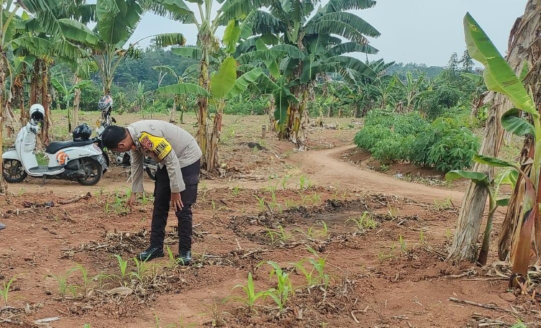 Bhabinkamtibmas Polsek Anyar Cek Lahan Jagung di Desa Binaan