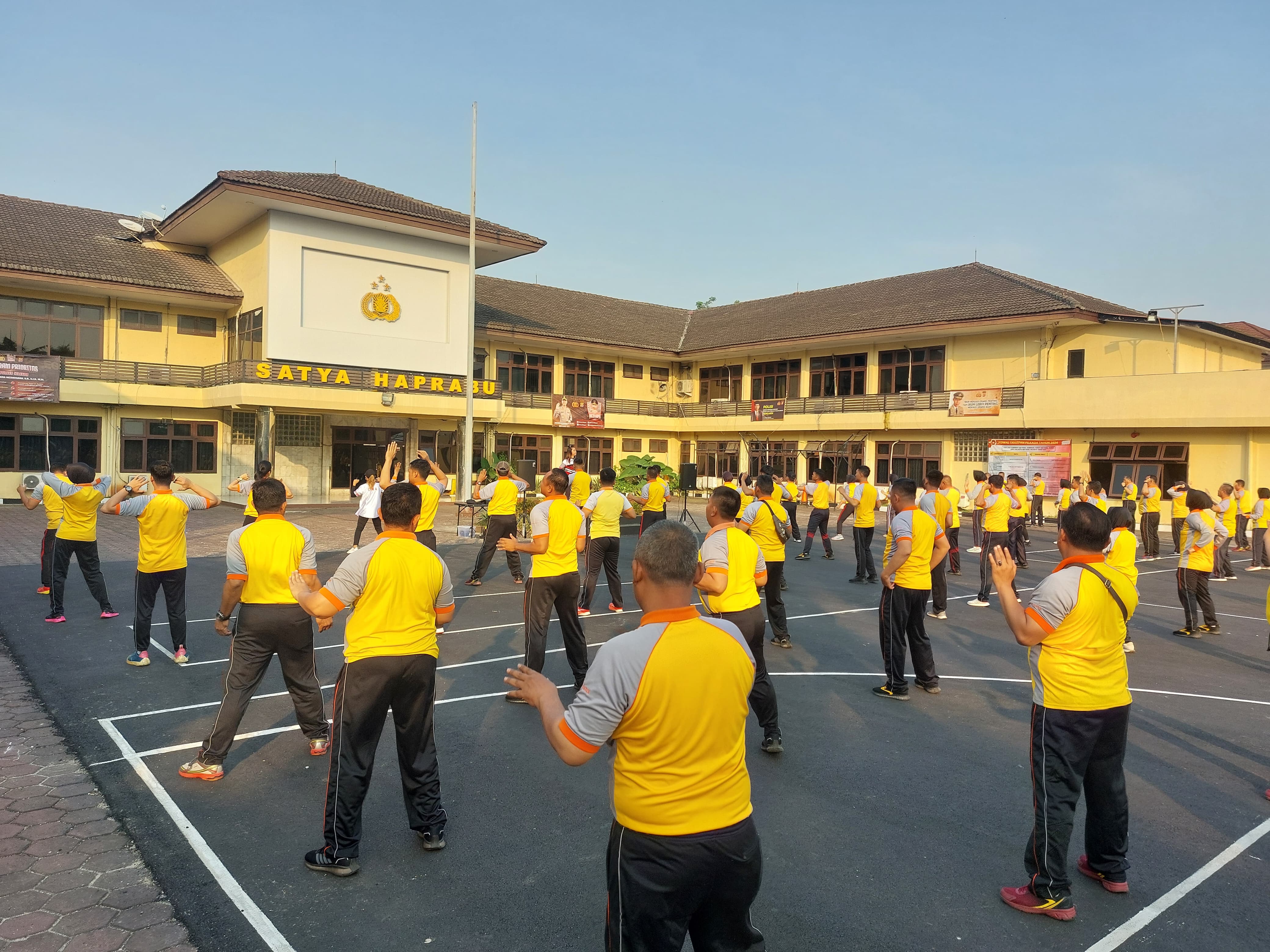 polres cilegon lakukan olahraga bersama di setiap hari jumat pagi