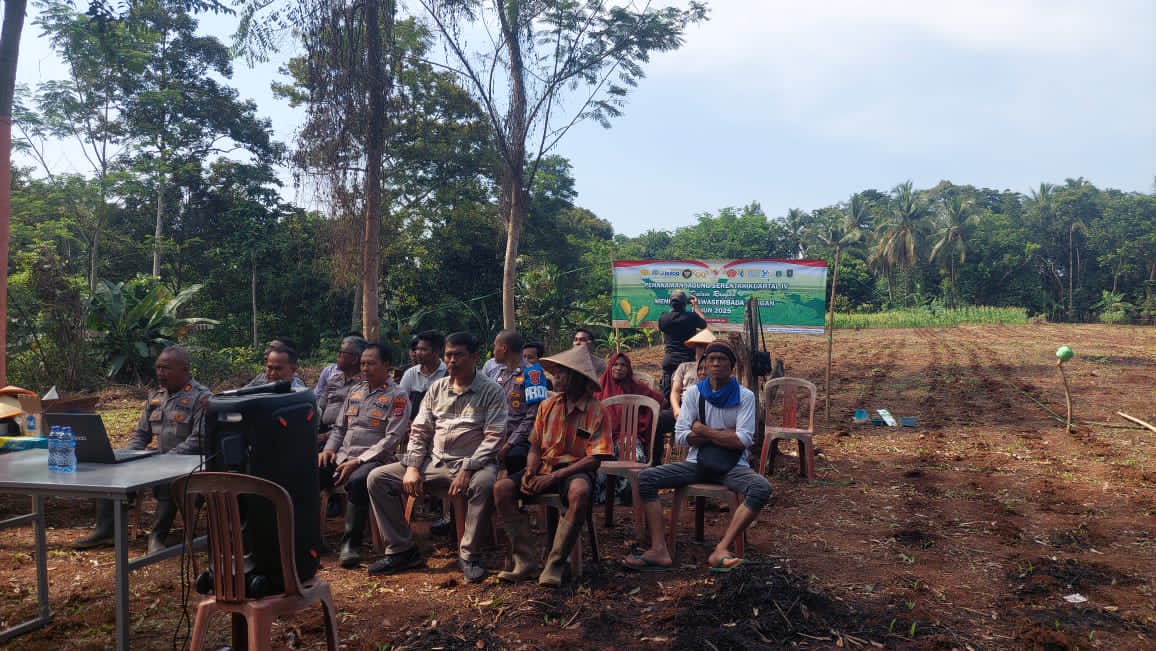 Penanaman Jagung serentak Kuartal IV Seluruh Indonesia di lahan milik kelompok tani Bpk. Maman Rt. 01/01 Kp. Macute Kel. Angsana Kec. Mancak-Serang daerah hukum Polres Cilegon.