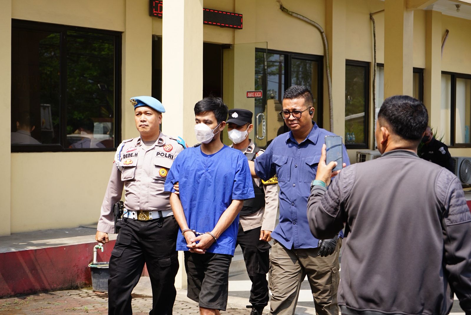 Melihat hal tersebut pelapor yang baru datang sehabis dari luar rumah menggunakan sepeda motor vario secara spontan langsung menghalangi sepeda motor x ride agar pelaku A (32) tidak dapat membawa kabur sepeda motor X RIDE. Kemudian pelapor langsung menangkap pelaku.A (32) dan berteriak maling maling. Pada saat itu ternyata pelaku A (32) diketahui tidak sendiri, karena pada saat pelapor berteriak maling datang dari sebrang jalan langsung memukul pelapor agar pelaku A (32) bisa melarikan diri Namun teriakan maling oleh pelapor membuat Saudara Rizki (adik) pelapor langsung keluar dari dalam rumah dan membantu pelapor mengamankan pelaku A (32) namun satu orang pelaku langsung melarikan diri menggunakan sepeda motor yang dikendarainya yaitu Honda Beat warna putih biru. Rekan pelaku inisial H (DPO) warga kota serang sedang dilakukan pengejaran oleh penyidik polsek ciwandan
