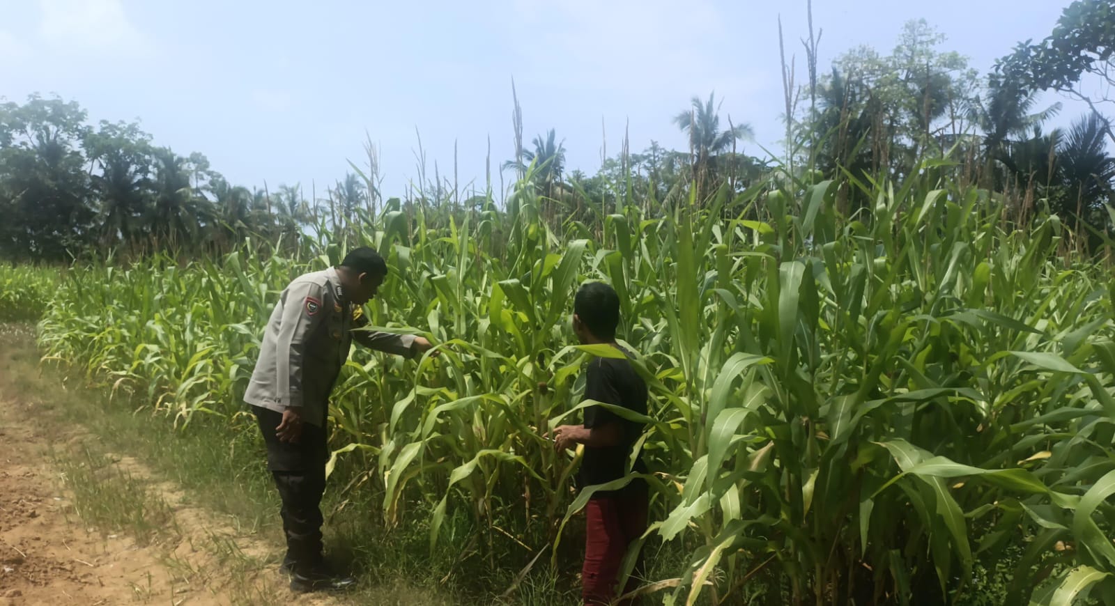 Bhabinkamtibmas Polsek Anyar Sedang Memonitoring Tanaman Jagung Bersama Poktan