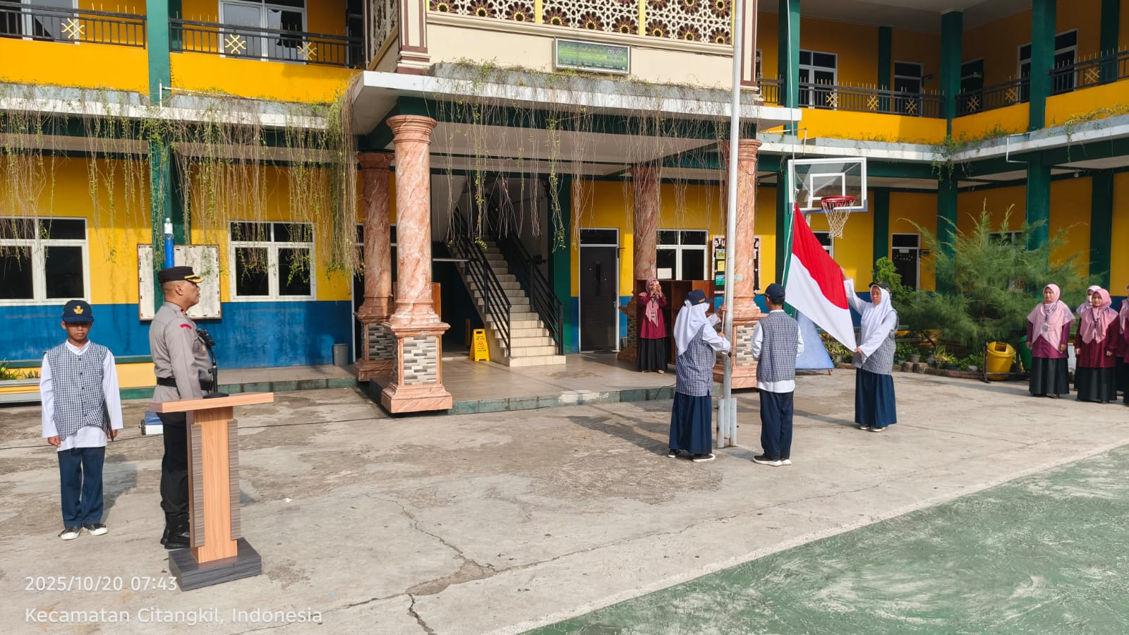 Cilegon - Melalui Kapolsek Ciwandan, Kompol And Suherman, melaksanakan program Polisi Peduli Pendidikan dengan menjadi pembina upacara di SD & SMP IT Mumtaz Al Bantani, Kelurahan Samangraya, Kecamatan Citangkil, Kota Cilegon, Senin (20/10/2025).