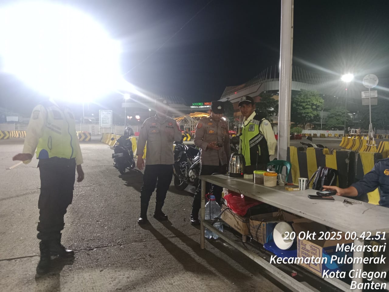 Cilegon - Personil Polsek Kskp Merak Polres Cilegon melaksanakan patroli di kawasan pelabuhan merak memberikan rasa aman dan damai, Senin (20/10/2025)