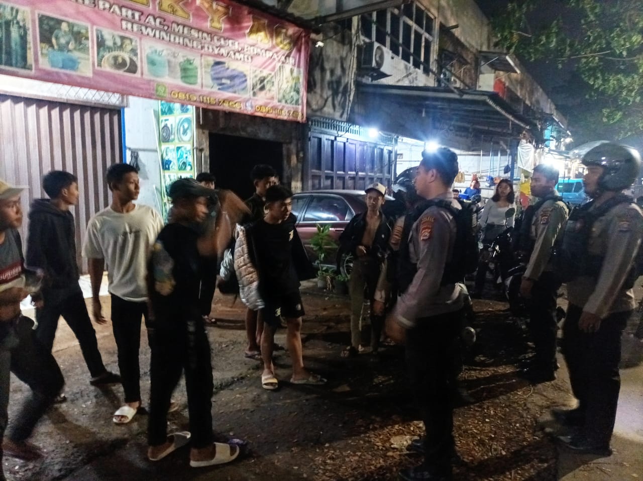 Kanit Turjawali Satsamapta Ipda Ferri dan Anggota Patroli Maung Presisi Sat Samapta Polres Cilegon menghimbau kepada masyarakat kota Cilegon untuk selalu waspada dan meningkatkan keamanan di lingkungan sekitarnya guna mengantisipasi kejadian tindak pidana khususnya 3C agar terciptanya situasi yang aman dan kondusif. (Satsamapta)