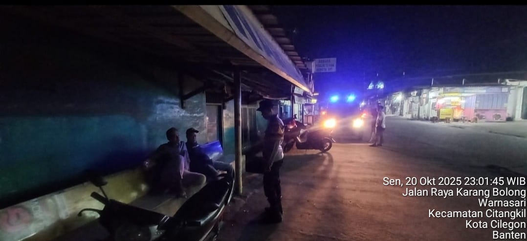 Cilegon - Polsek Ciwandan Polres Cilegon Polda Banten kembali menunjukkan komitmennya dalam menciptakan keamanan dan ketertiban masyarakat (kamtibmas) yang kondusif melalui Kegiatan Patroli Malam, Kegiatan ini dilakukan secara rutin dengan berkeliling di daerah hukum Polsek Ciwandan, Selasa (21/10/2025).