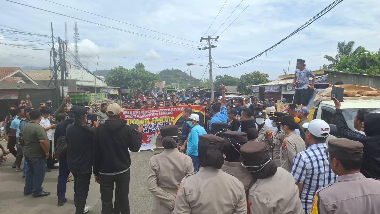 "Polres Cilegon Amankan Unjuk Rasa Komando Barisan Masyarakat Bojonegara dengan Profesional"