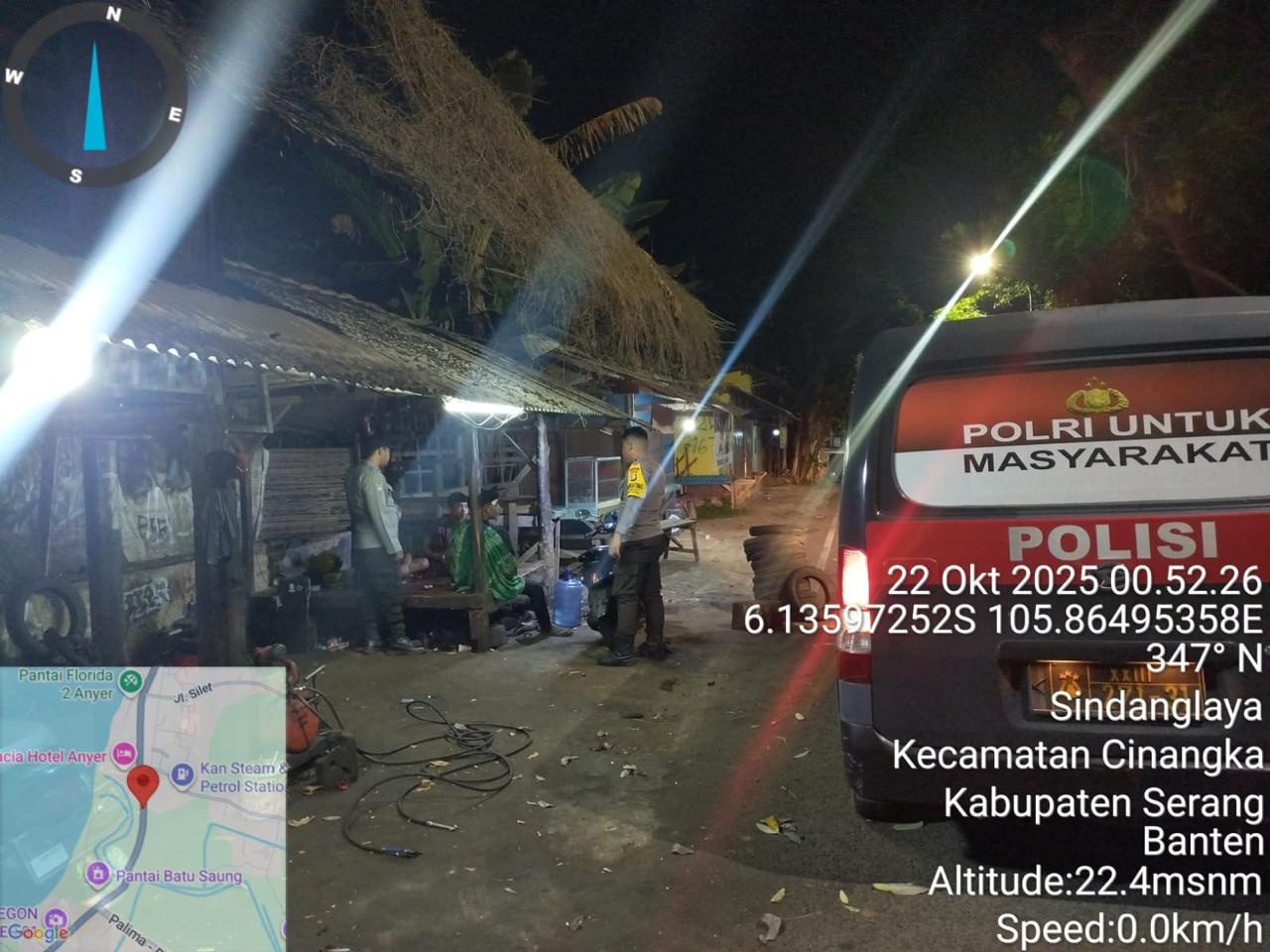 *Cilegon* – Dalam Rangka Pencegahan Kejahatan Jalanan dan Memelihara situasi keamanan dan menjaga serta memberikan rasa aman dan nyaman di masyarakat,Salah satu upaya untuk mewujudkan hal tersebut sebagaimana yang dilakukan oleh Personil Polsek Cinangka Polres Cilegon Polda Banten melaksanakan giat patroli blue light malam hari hingga menjelang pagi, Rabu (22/10/2025).