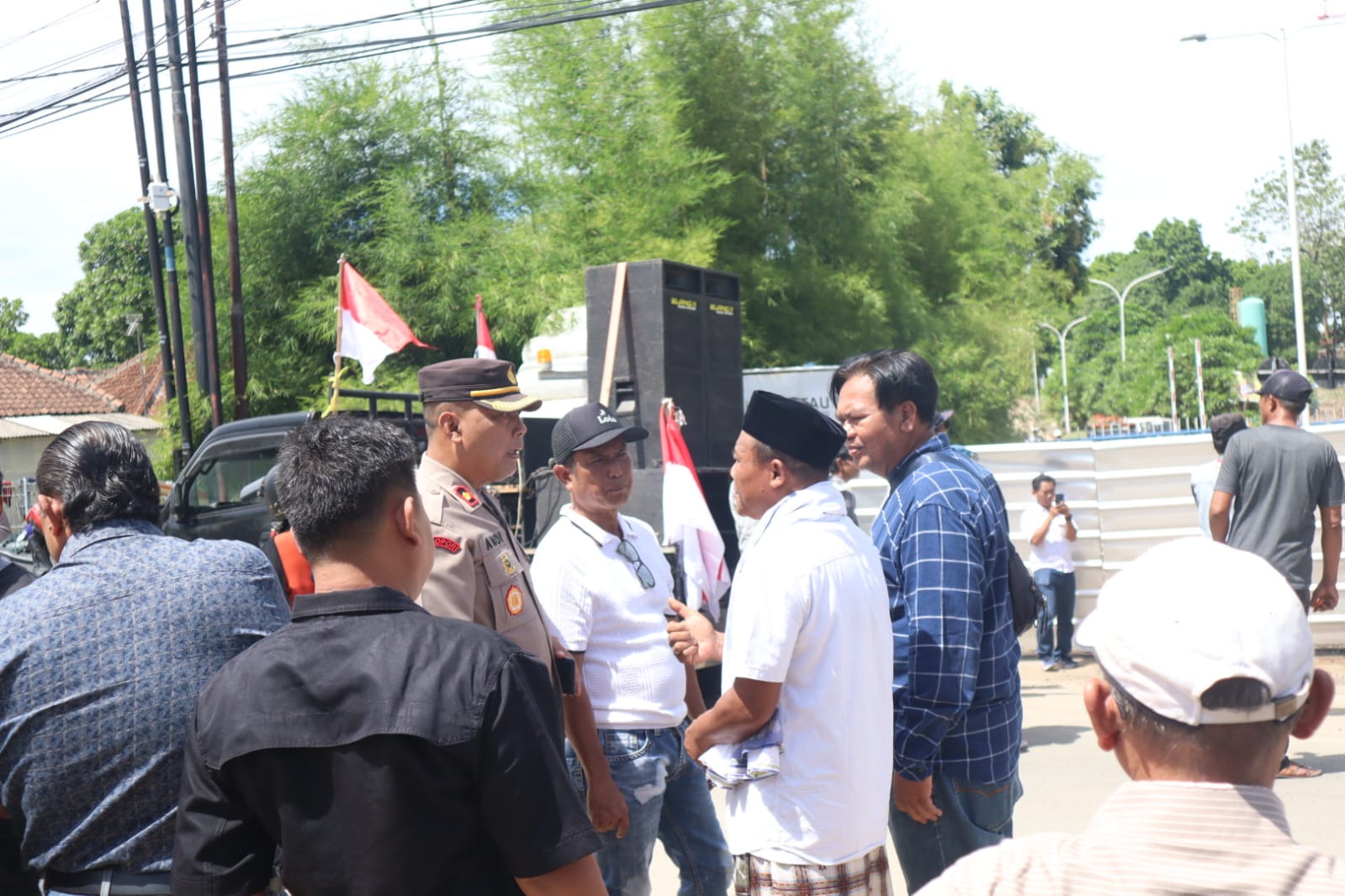 Sebelum aksi dimulai, Kanit 4 Satintelkam Polres Cilegon IPTU Asep Sunarya memberikan imbauan agar massa menyampaikan aspirasi secara damai dan tidak mengganggu ketertiban umum. Massa yang dipimpin oleh Korlap bernama Ngadi Susanto (Alex) memulai longmarch dari titik kumpul di tanah wakaf dekat pemancingan RT 002/004 menuju lokasi aksi.