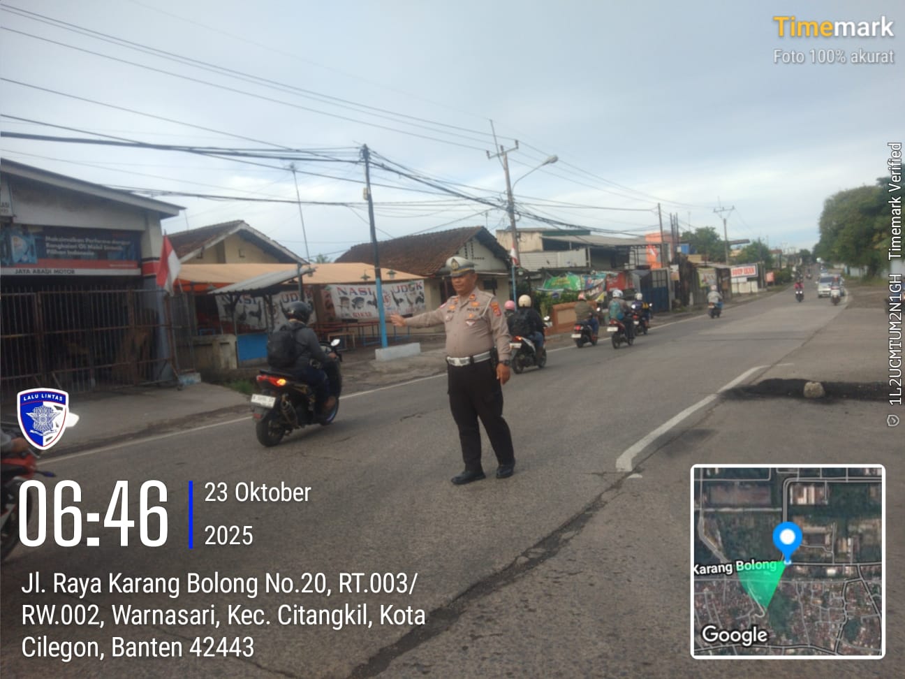 Cilegon - Tingginya mobilitas masyarakat pada jam-jam sibuk, tingkat kerawanan baik itu kemacetan ataupun kecelakaan pasti ada potensi, sehingga untuk mengantisipasi hal tersebut Personil Polsek Ciwandan Polres Cilegon Polda Banten Bhabinkamtibmas melaksanakan Strong Point pada sejumlah lokasi, Kamis (23/10/2025).