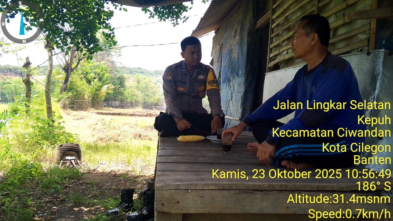 Cilegon - Bhabinkamtibmas Kelurahan Kepuh Polsek Ciwandan Polres Cilegon Polda Banten AIPDA Mere Erlansyah Menyapa warga serta Ajak warga Binaannya untuk berperan aktif jaga keamanan lingkungan serta jalin komunikasi agar tercipta situasi aman di daerah hukum Polsek Ciwandan Polres Cilegon Polda Banten, Kamis (23/10/2025).