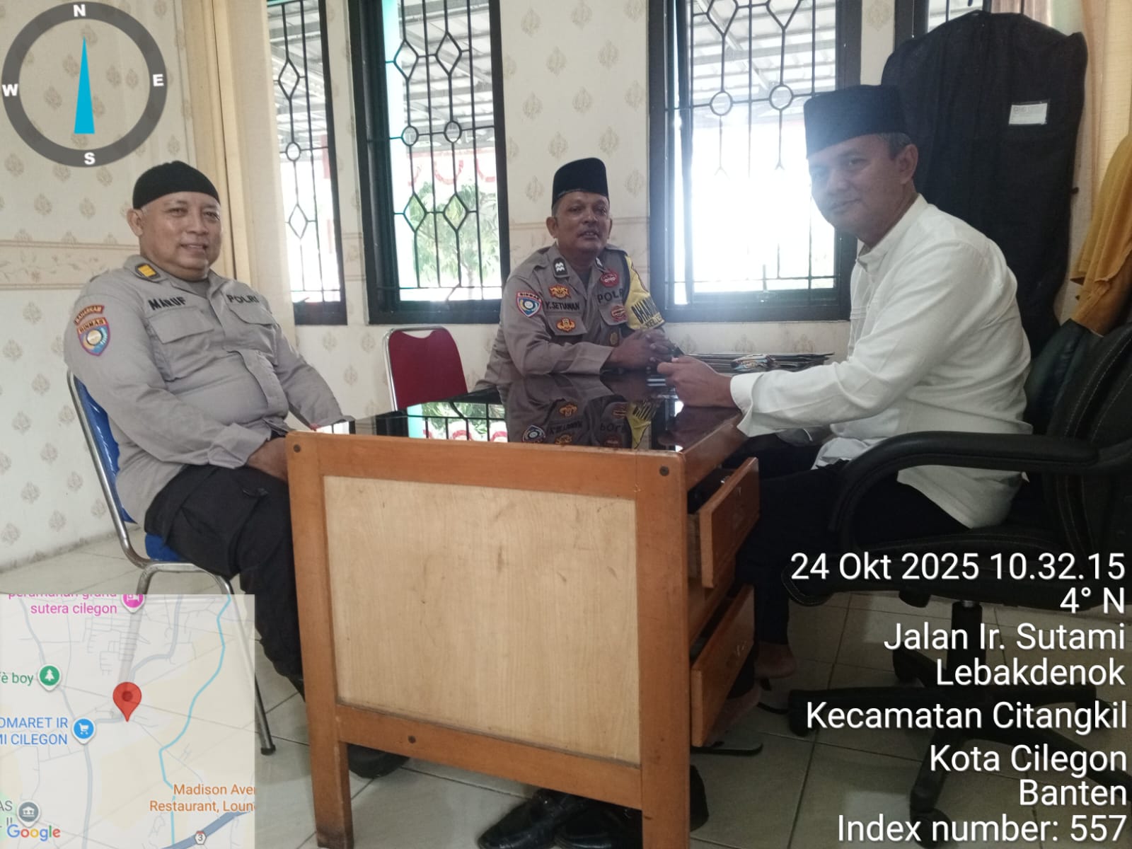 Cilegon - Kali ini Wakapolsek Ciwandan AKP Uup M. Ma'ruf Dan Bhabinkamtibmas Kelurahan Lebak Denok Polsek Ciwandan Polres Cilegon Polda Banten AIPTU Yudi Setiawan melaksanakan kegiatan sambang Dialogis Dan silaturahmi Bersama Lurah Dan Staff Kelurahan Lebak Denok Kecamatan Citangkil Kota Cilegon, Jum’at (24/09/2025).
