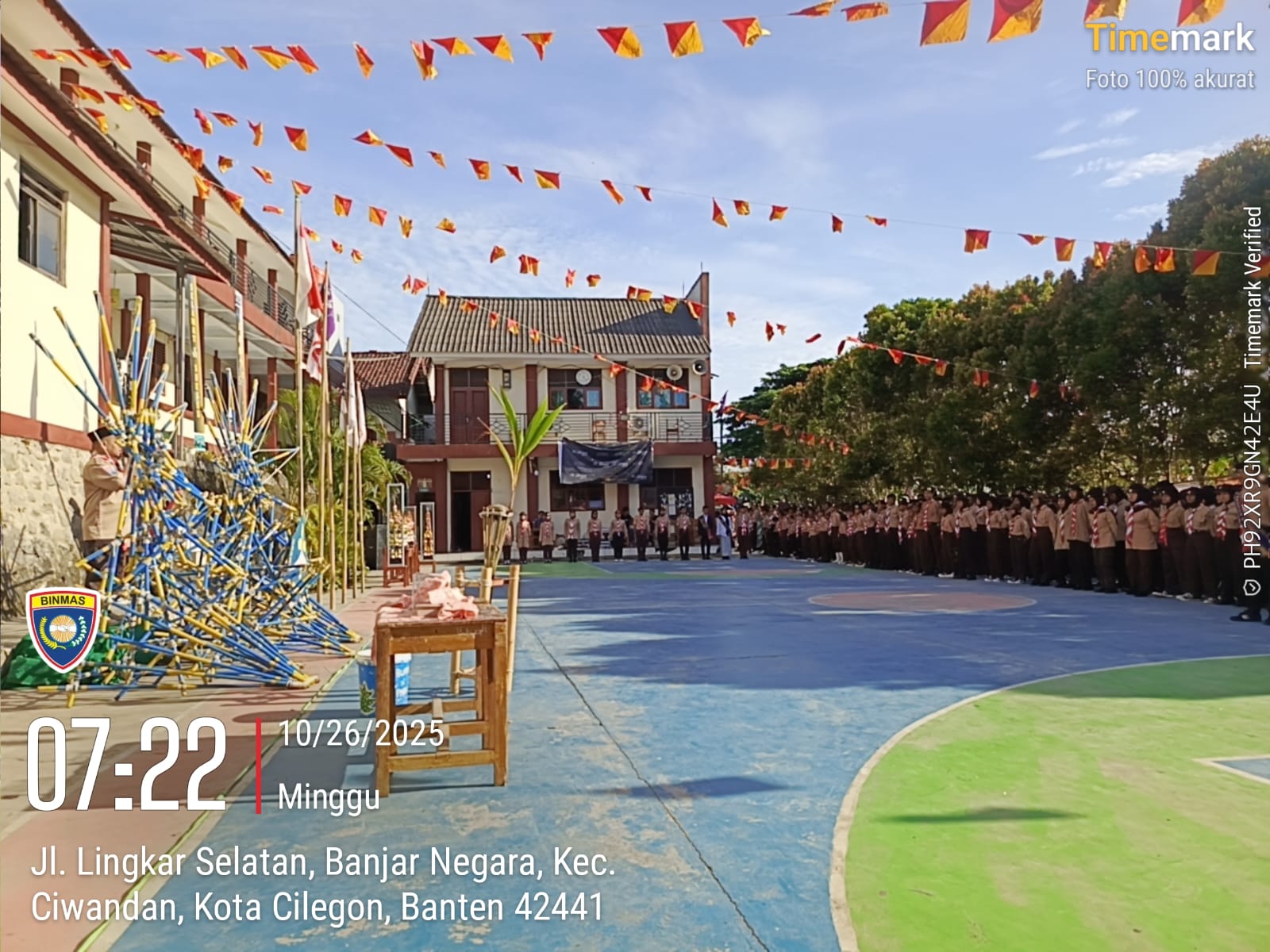 Cilegon - Kasat Binmas IPTU Muhidin dan Wakapolsek Ciwandan AKP Uup M. Ma'ruf Serta Bhabinkamtibmas Polsek Ciwandan menghadiri kegiatan pembukaan Lomba Tangkas Pramuka Se-Banten Tahun 2025 di SMA Al-Khairiyah 4 Cilegon, Minggu (26/10/2025).