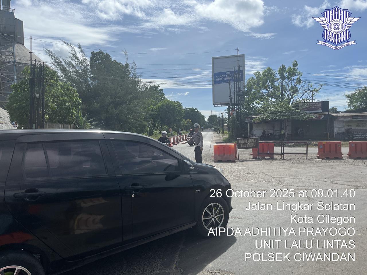 Cilegon - Weekend kali ini Personil Unit Lantas Polsek Ciwandan Polres Cilegon Polda Banten melaksanakan pengaturan lalu lintas di Simpang JLS tepatnya di Pertigaan depan PT. Semen Indonesia Demi Kelancaran Arus Lalu-lintas Wisata, Minggu (26/10/2025).