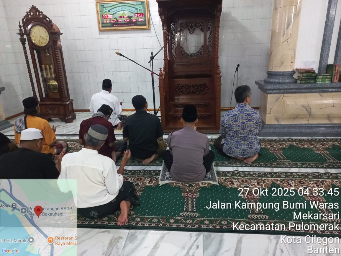 Cilegon – Personil Kskp Merak Polres Cilegon Polda Banten menggelar kegiatan Pembinaan Rohani dengan shalat subuh keliling di Masjid Yang ada Di Daerah hukum Polsek Kp Merak Polres Cilegon Polda Banten, Senin (27/10/2025).