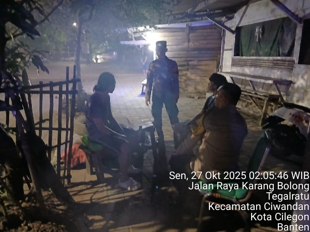 Cilegon - Personil Polsek Ciwandan Polres Cilegon Polda Banten Melaksanakan kegiatan Patroli Dialogis Di daerah hukum Polsek Ciwandan Guna Menciptakan Suasana Yang Aman Serta Memberikan Pesan-pesan Kamtibmas, Senin (27/10/2025).