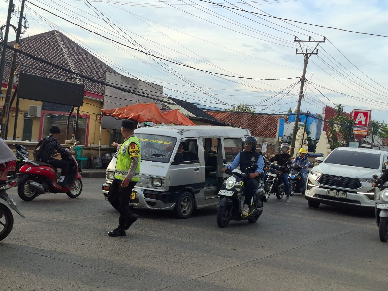 Kapolres Cilegon Polda Banten AKBP Dr. Martua Raja Taripar Laut Silitonga Melalui Kapolsek Anyar Polres Cilegon Polda Banten IPTU Iwan Sofiyan Mengatakan Dalam Pelayanan Masyarakat demi Kelancaran Arus Lalu-lintas di pagi hari Anggota Polsek Anyar tetap melakukan kegiatan Pengaturan arus lalu-lintas yang rutin dilaksanakan guna mencegah Kemacetan arus lalu-lintas yang meningkat khusus nya pada pagi hari di Simpang Puskesmas, simpang Gudang Areng Jl. Raya Anyar-Cinangka.
