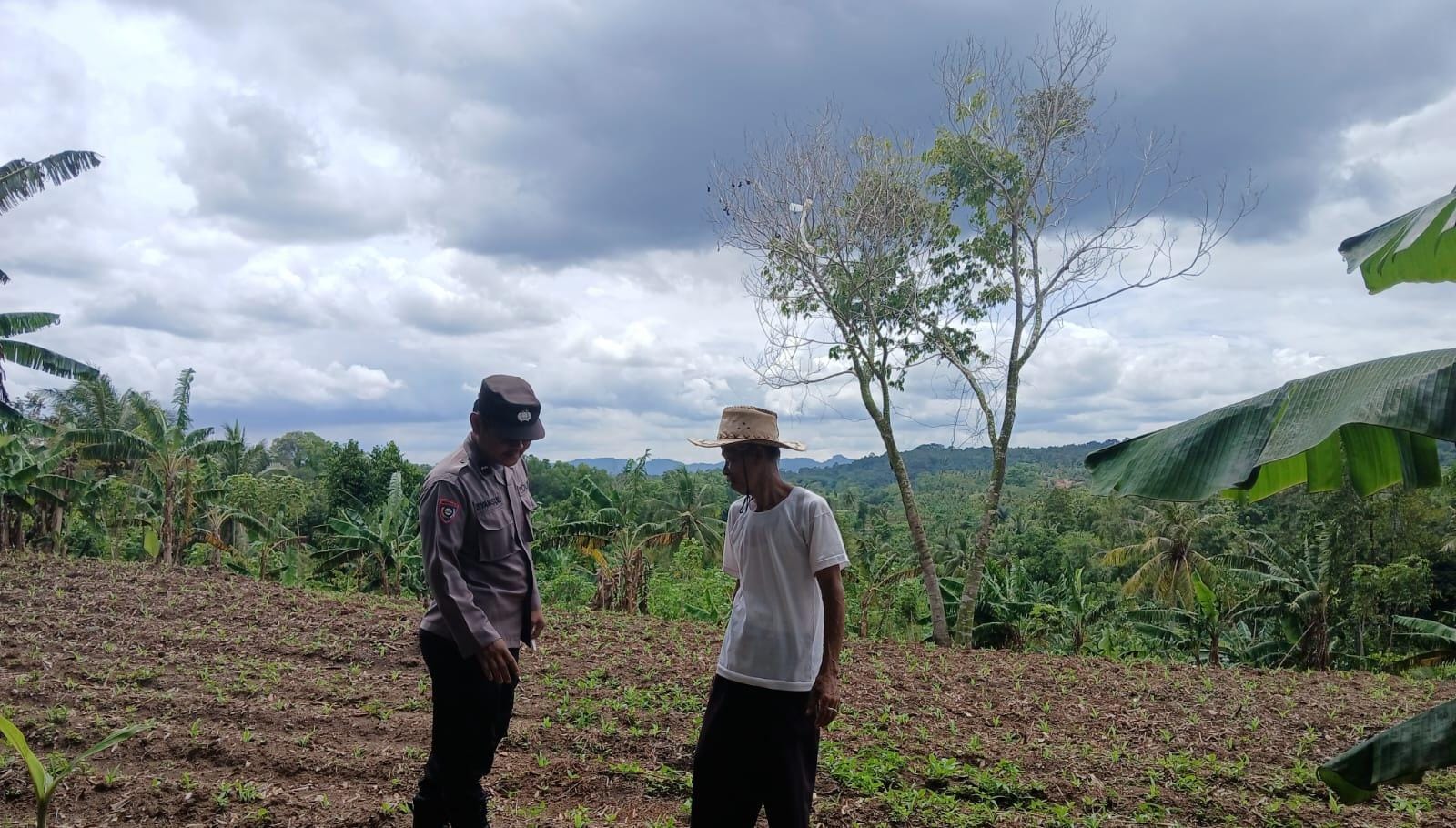 Bhabinkamtibmas Polsek Anyar Memonitoring dan Cek Tanaman Jagung Bersama Poktan