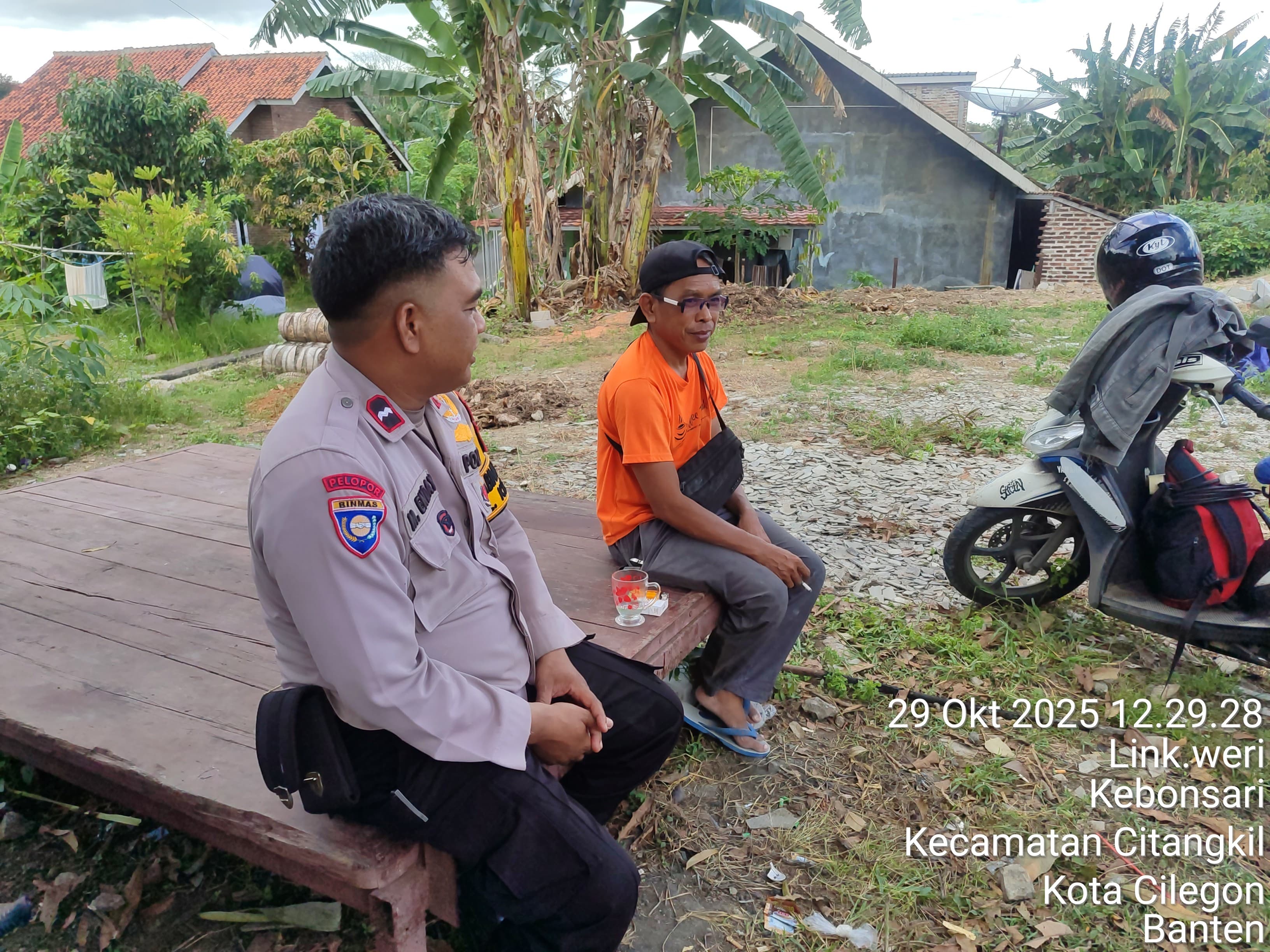 Cilegon - Giat sambang ini merupakan salah satu tugas rutin Bhabinkamtibmas yakni dengan melaksanakan kunjungan kepada masyarakat binaannya untuk menjalin silaturahmi yang lebih erat dan menyampaikan pesan-pesan kamtibmas serta mencari informasi yang berkembang di masyarakat agar tercipta situasi kamtibmas yang aman dan kondusif, Rabu (29/10/2025).