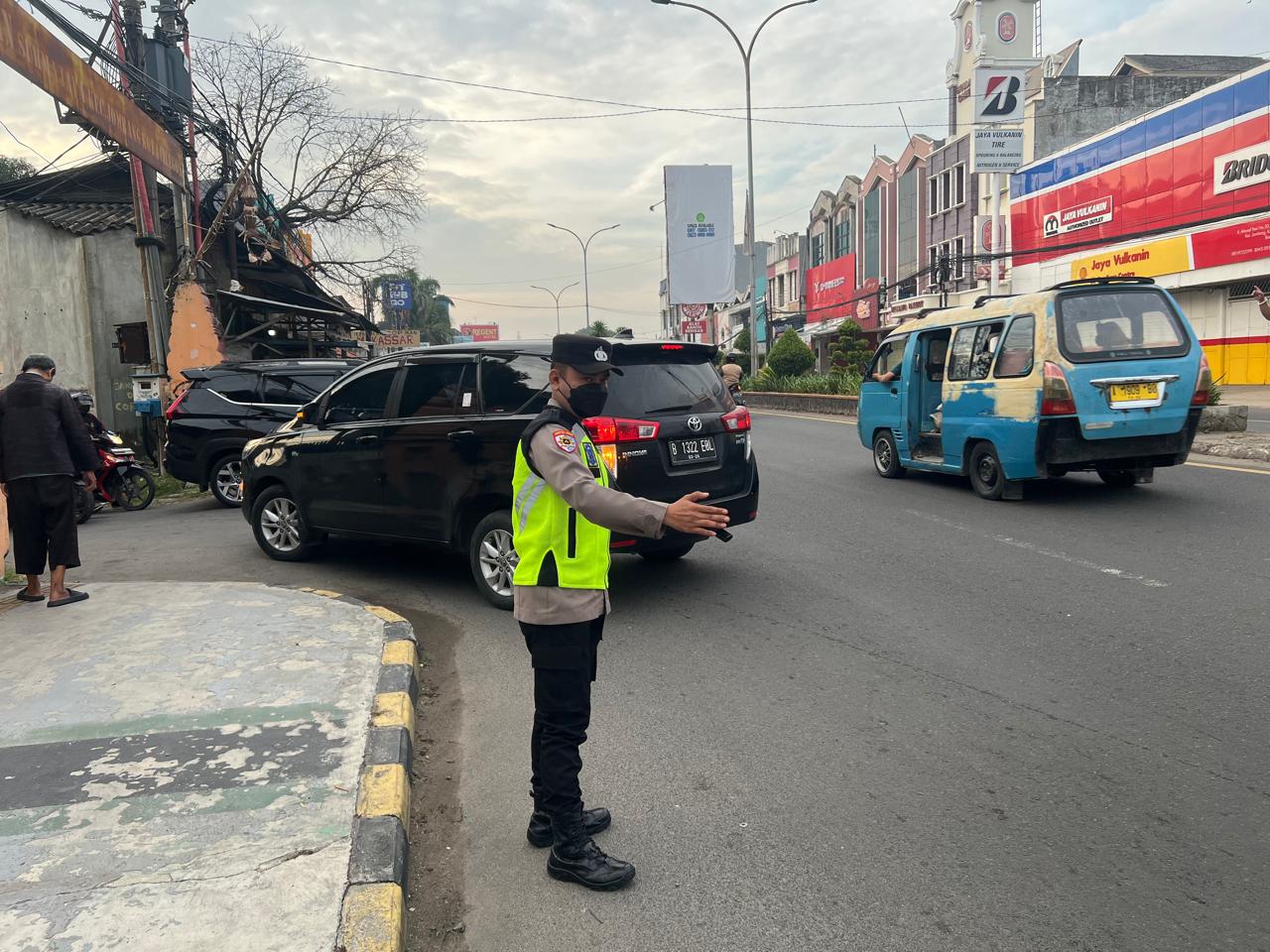 Polres Cilegon, Aipda Emi Prasetyo melaksanakan kegiatan pengaturan arus lalu