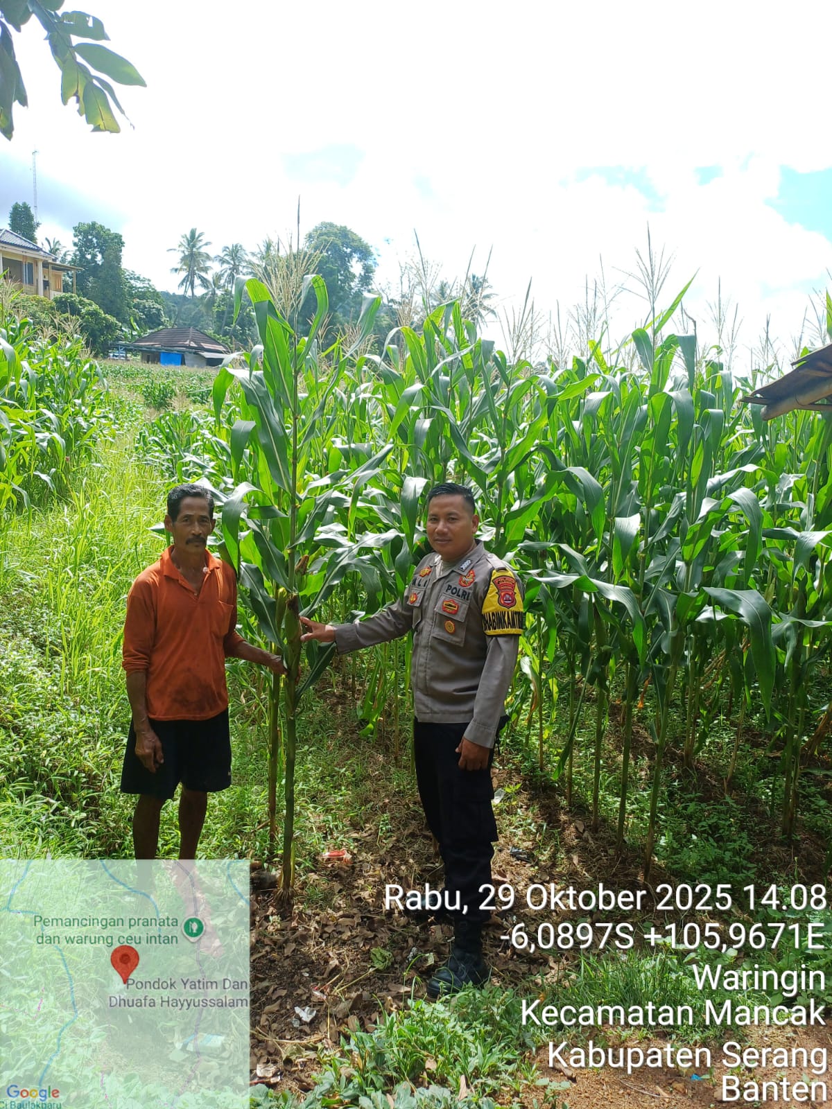 Cilegon - Polsek KP Banten Polres Cilegon Polda Banten berkolaborasi dengan Polsek Mancak melaksanakan giat pengecekan lahan Pertanian Jagung. Rabu (29/10).