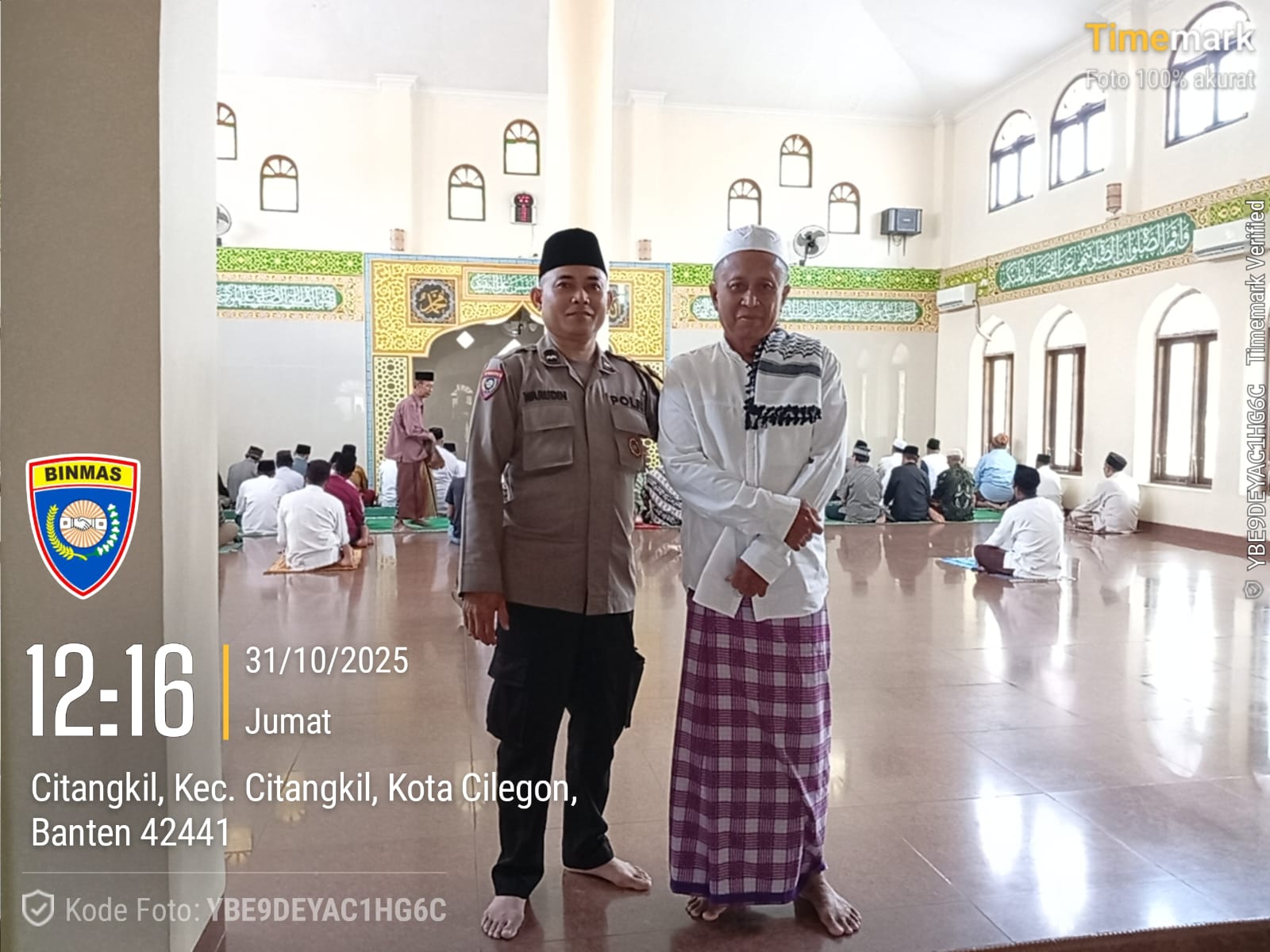 Cilegon - Dalam Rangka Memakmurkan Masjid Dan Sambang,Bhabinkamtibmas Polsek Ciwandan Polres Cilegon Polda Banten Sholat Berjama’ah dan Bersilaturahmi kepada para tokoh Agama sebagai upaya meningkatkan Ukhuwah Islamiyah dalam menjalin silaturahmi dan membangun komunikasi yang baik, Jum’at (31/10/2025).