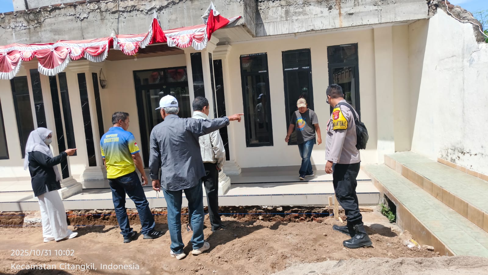 Cilegon - Bhabinkamtibmas Polsek Ciwandan Polres Cilegon Polda Banten Melaksanakan kegiatan Pra Kontruksi Pelaksanaan pembangunan Dikelurahan Samangraya Kecamatan Citangkil kota Cilegon, Jum’at (31/10/2025).