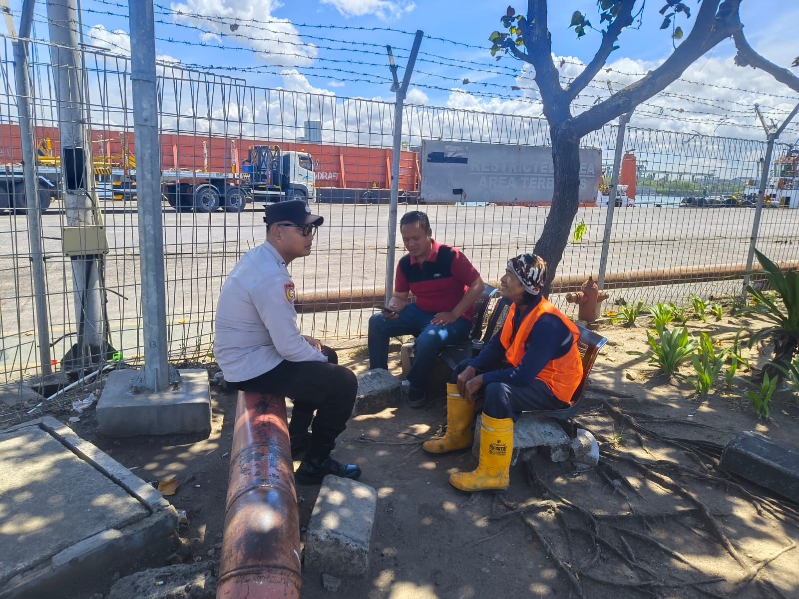 Jalin Silaturahmi, Bhabinkamtibmas Pelabuhan Polsek KSKP Banten berbincang ke Buruh Pelabuhan