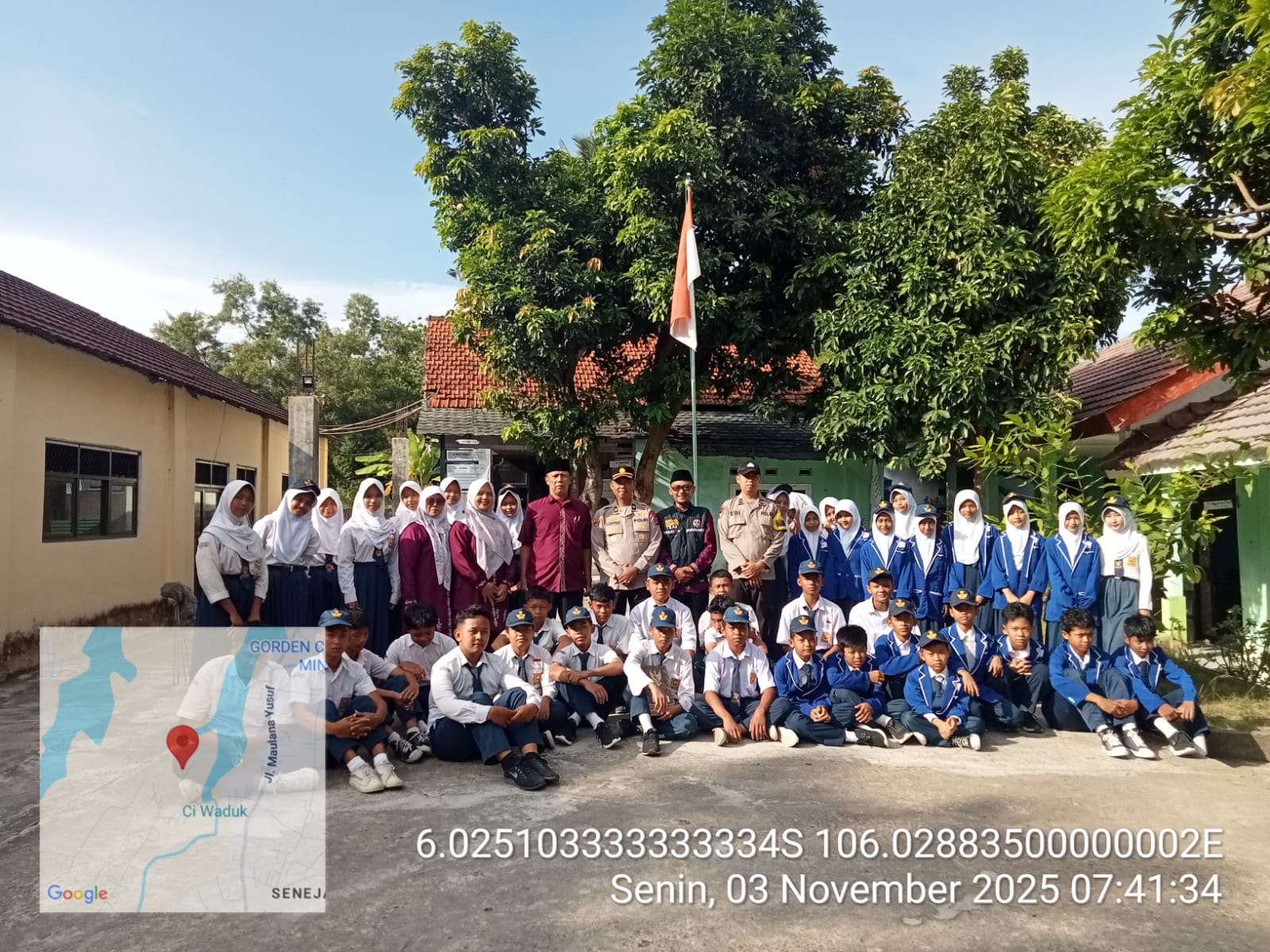 Cilegon – Bhabinkamtibmas Polsek Ciwandan Dampingi Kabag SDM Polres Cilegon Polda Banten KOMPOL Entang Cahyadi Menyambangi SMP Al-A’raaf Dikelurahan Tamanbaru Kecamatan Citangkil, Menyampaikan Pesan-pesan Kamtibmas Dan Memberikan Imbauan, Senin (03/11/2025).