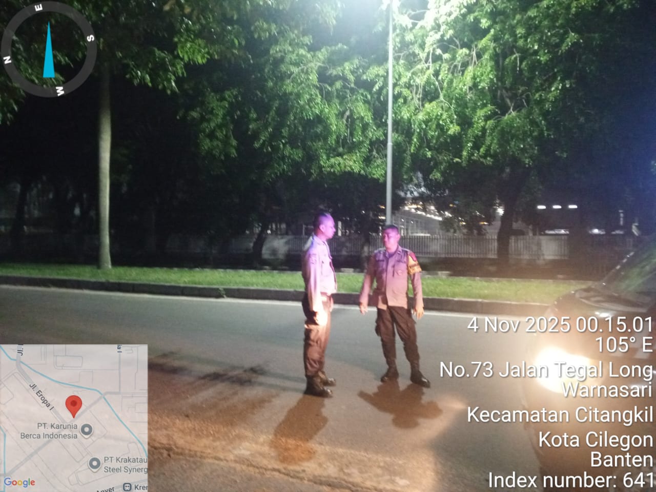 Cilegon - Personil Polsek Ciwandan Polres Cilegon Polda Banten Selalu Melaksanaan Kegiatan KRYD (Kegiatan Rutin Yang Ditingkatkan) Patroli Rutin malam hari di daerah hukum Polsek Ciwandan Guna Persempit Ruang Pelaku Tindak Kejahatan, Selasa (04/11/2025).