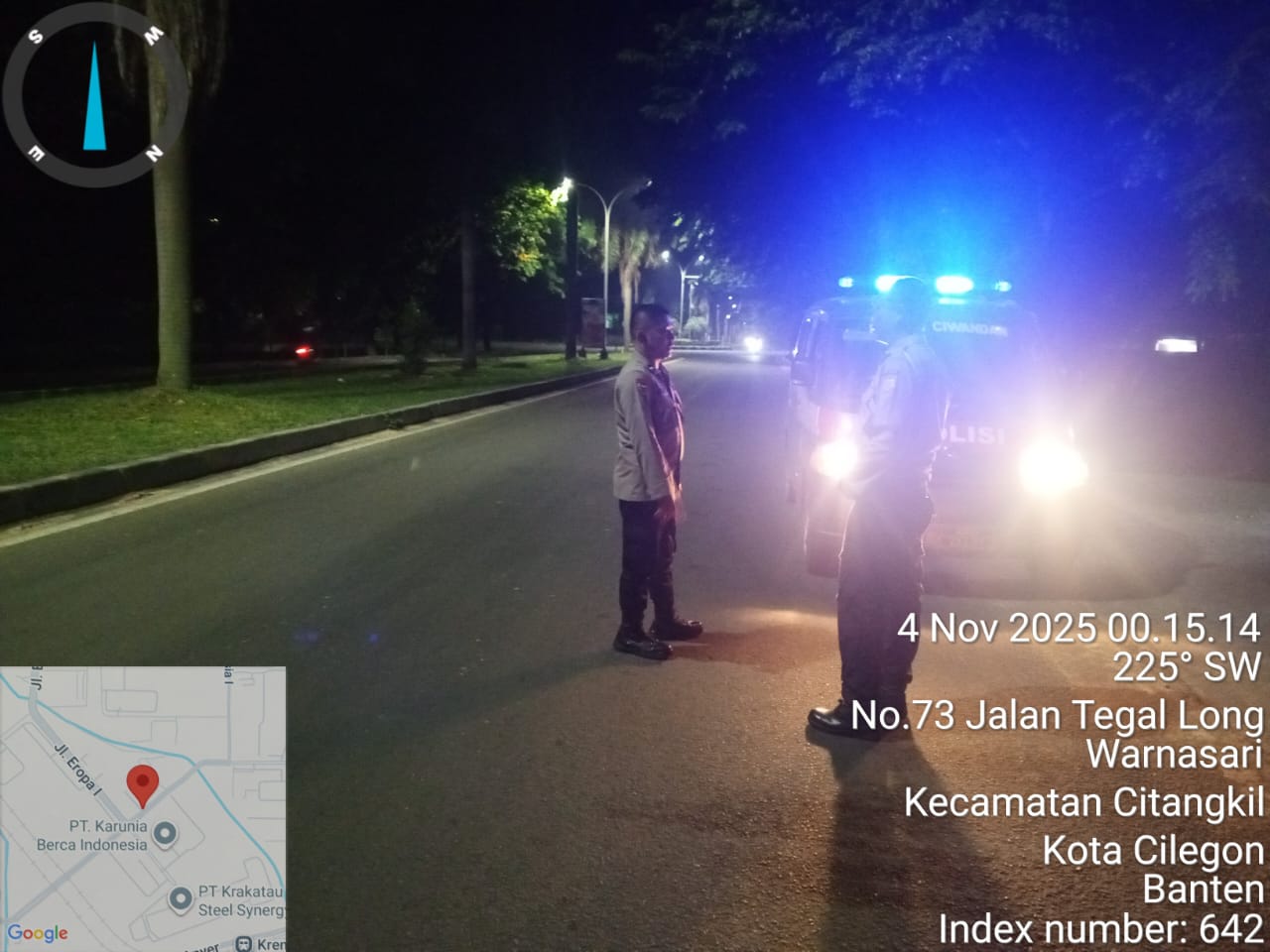 Cilegon - Personil Polsek Ciwandan Polres Cilegon Polda Banten Selalu Melaksanaan Kegiatan KRYD (Kegiatan Rutin Yang Ditingkatkan) Patroli Rutin malam hari di daerah hukum Polsek Ciwandan Guna Persempit Ruang Pelaku Tindak Kejahatan, Selasa (04/11/2025).