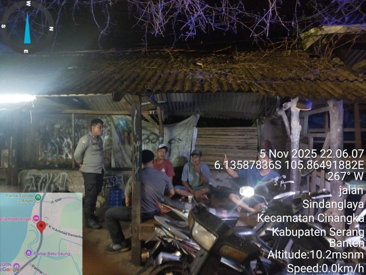 *Cilegon* – Dalam Rangka Pencegahan Kejahatan Jalanan dan Memelihara situasi keamanan dan menjaga serta memberikan rasa aman dan nyaman di masyarakat,Salah satu upaya untuk mewujudkan hal tersebut sebagaimana yang dilakukan oleh Personil Polsek Cinangka Polres Cilegon Polda Banten melaksanakan giat patroli blue light malam hari hingga menjelang pagi, Kamis (06/11/2025).