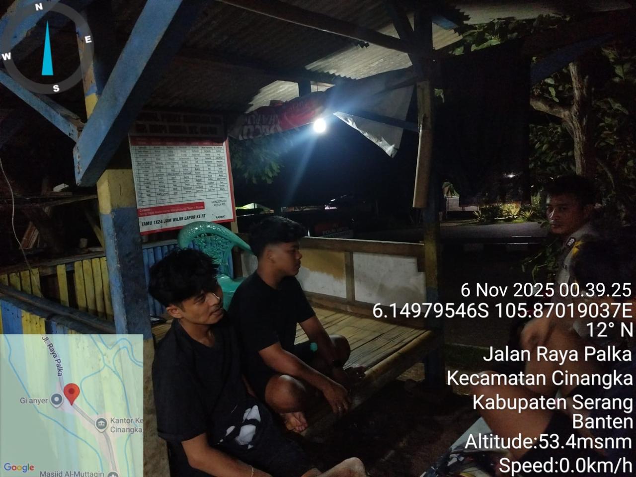 *Polres Cilegon* || Personil Bhabinkamtibmas Polsek Cinangka melaksanakan Program Komandan Wish Kapolda Banten RONDA SATKAMLING menyampaikan komunikasi dengan Petugas Siskamling agar berperan aktif dalam menciptakan Harkamtibmas yang aman dan Kondusif, Kamis (06/11/2025).