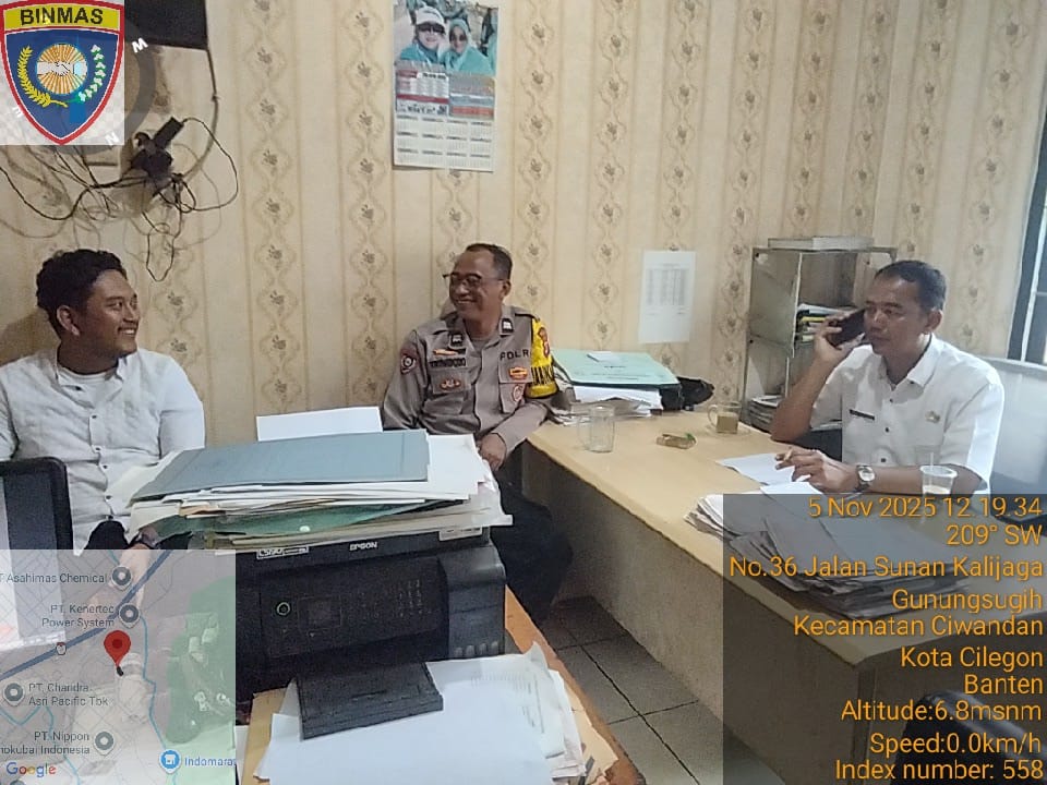 Cilegon – Bhabinkamtibmas Polsek Ciwandan Polres Cilegon Polda Banten melaksanakan kegiatan Pengayoman dan Hadir Di tengah-tengah Warga masyarakat Guna Menciptakan suasana yang nyaman, Rabu (06/11/2025).